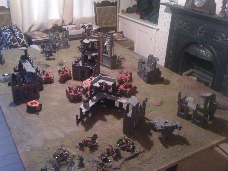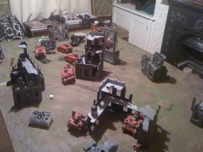 So the Fists suffered there first lost, ever :( I think horde units is there bane. Looking at the list I have little which can deal with hordes and the marines need to get out the razorbacks to pop a transport which leads them to be shot at or assaulted next turn - not good!