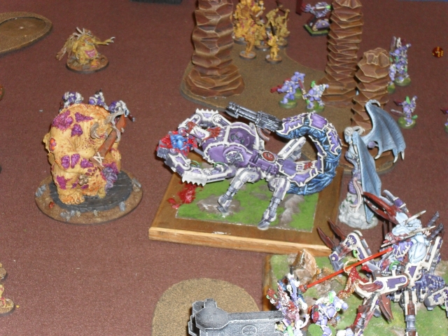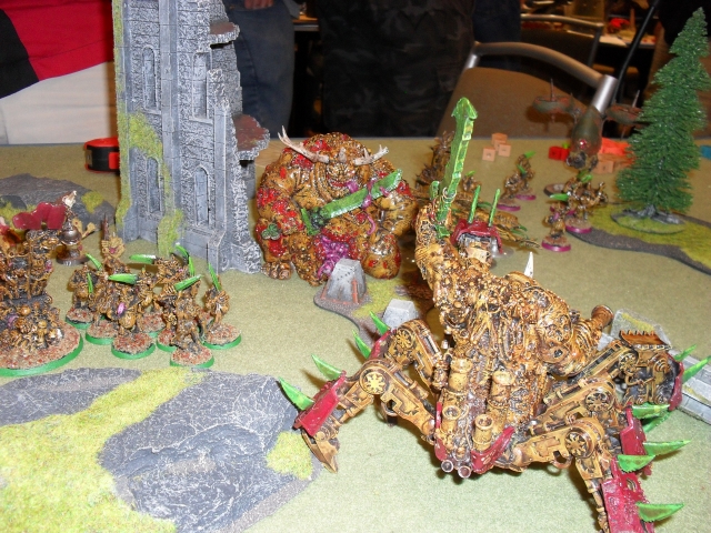 In his second turn he pulls in Scabbiethrax, his second Prince, a unit of plaguebearers, and his screamers.