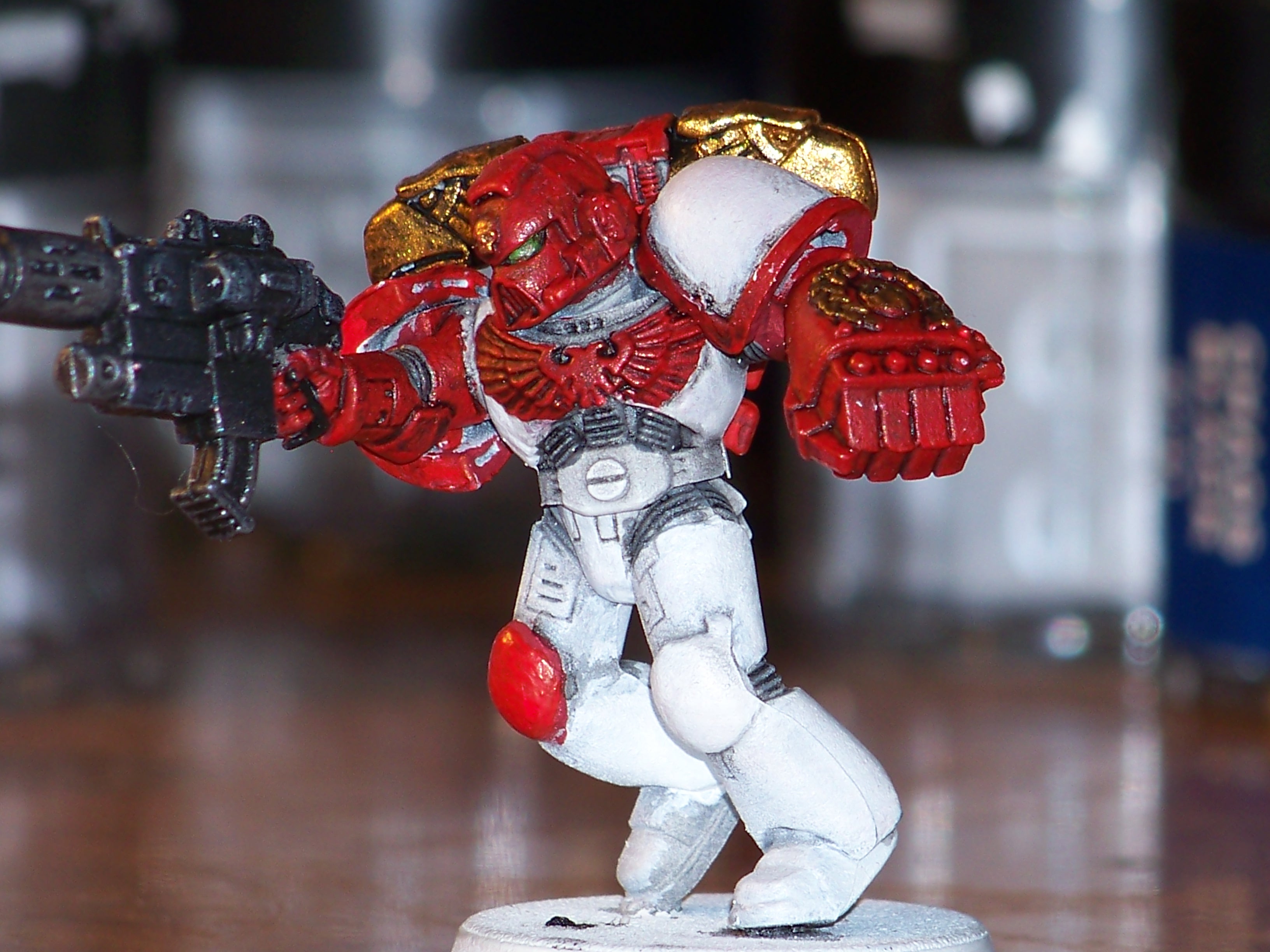 I wasn't saying to do an all read marine. I was saying that, instead of using WHITE, you should use the color you did on the drop pod, which looks like more of a Space Wolves gray to me (from the pics).