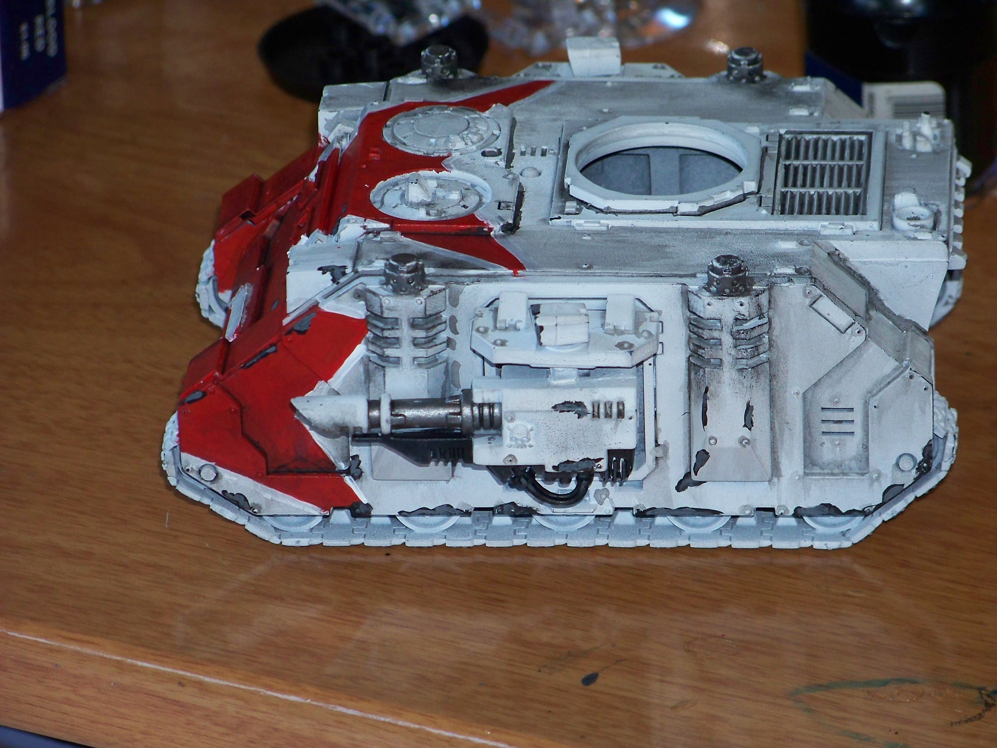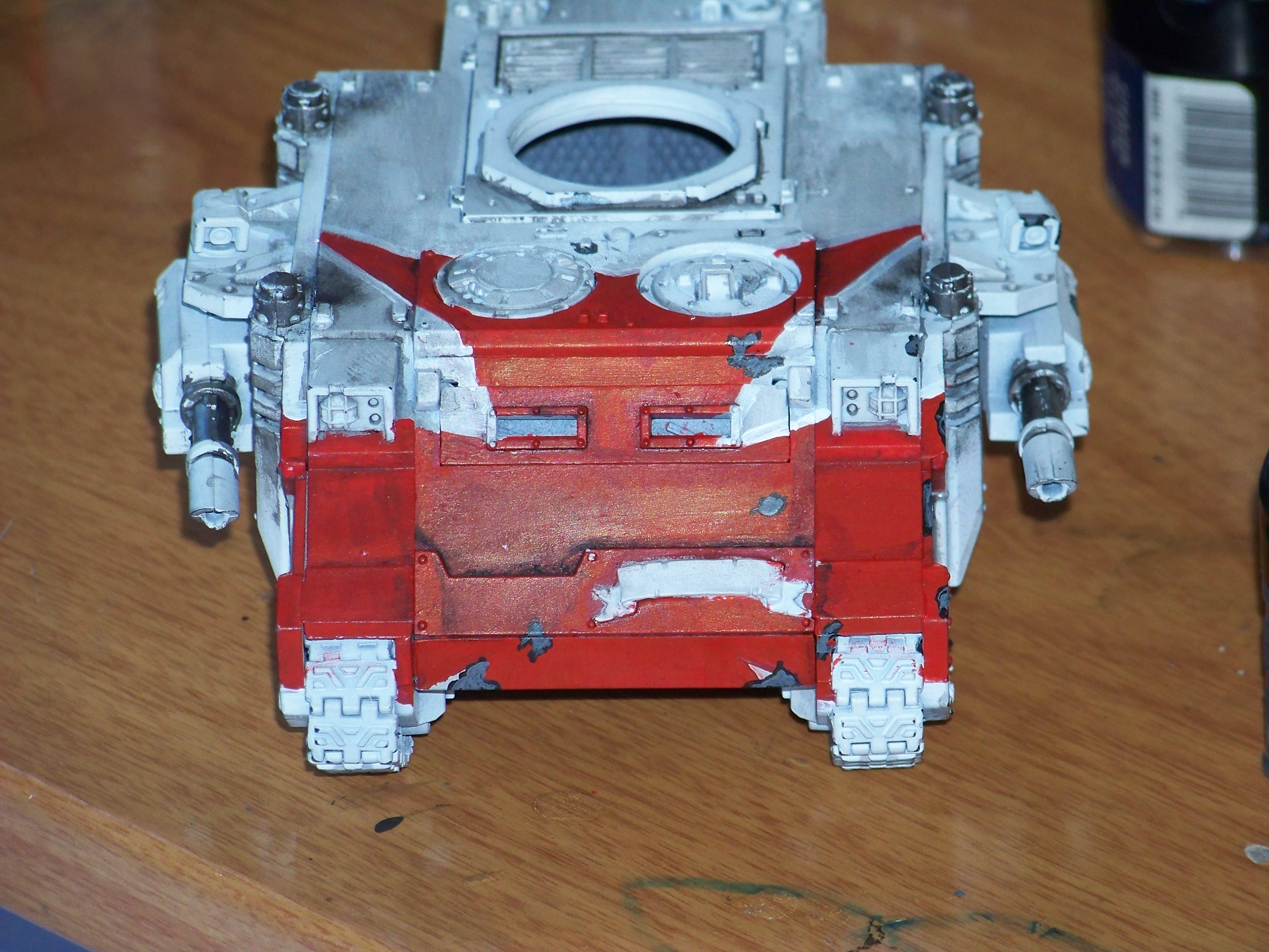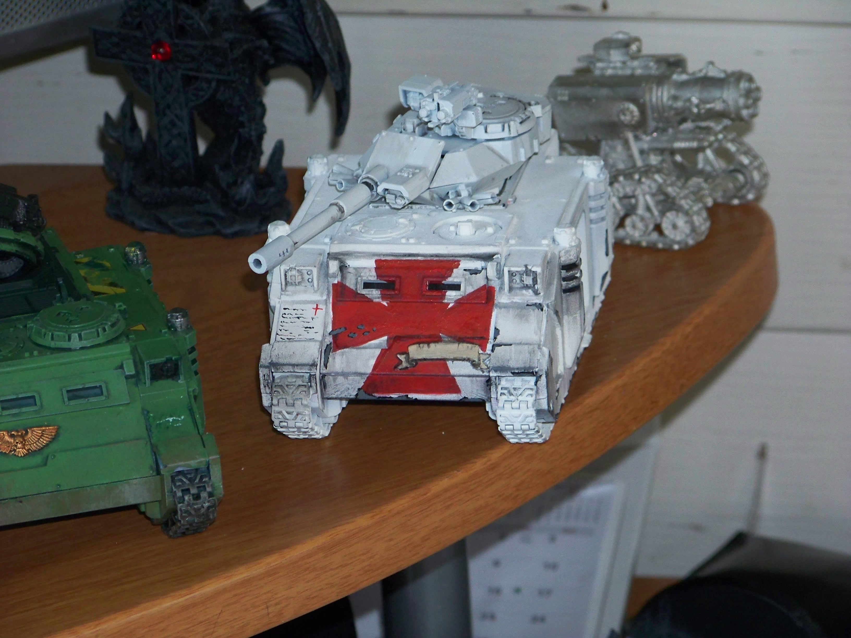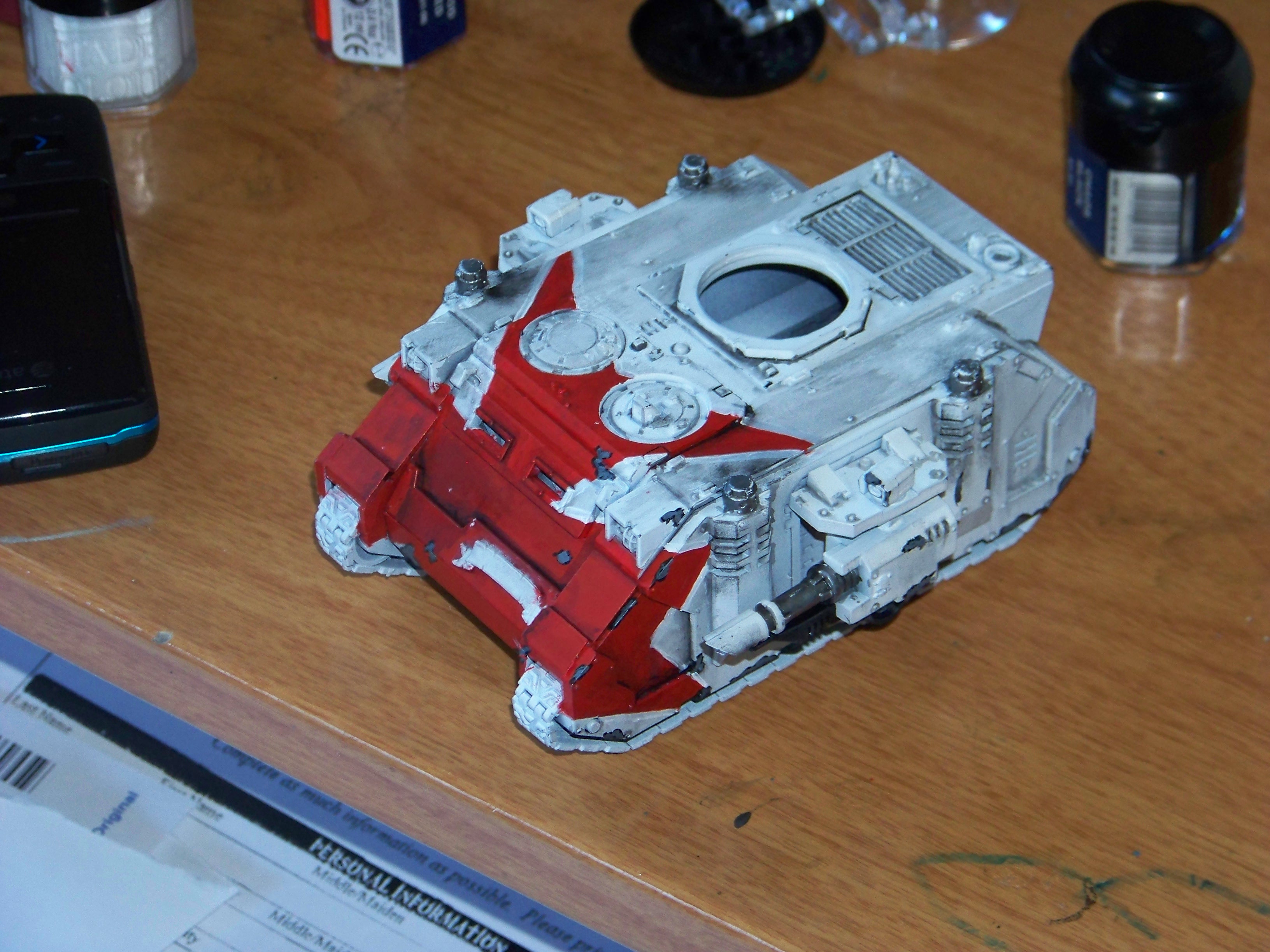 @MagickaMemories I really don't like a All red marine. I don't want to do Red, black, or white Templar. My idea is they are The Knights templar, hence the white and red.. but after test painting my Pred.. i am second guessing white vehicles. I still like the way it looks, but it's just so damned hard to weather and get the "look" i want. and looking at my already painted Salamander army i'm starting to think..do i really want to strip these guys down and re paint them. Here is a test pic of two different versions of the same pread ((yes..i painted it.. messed up the large Cross badly and stripped it. doing a second attempt.)
