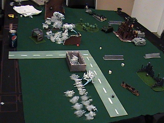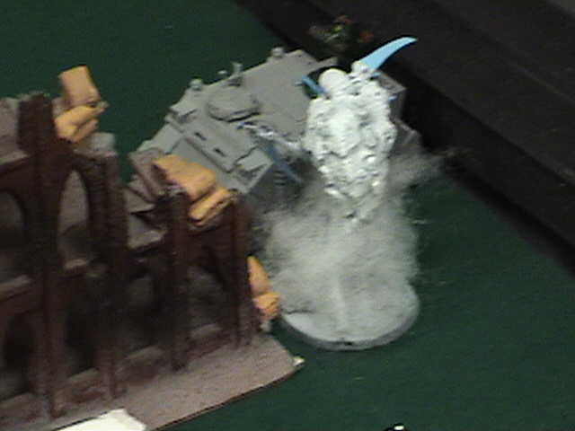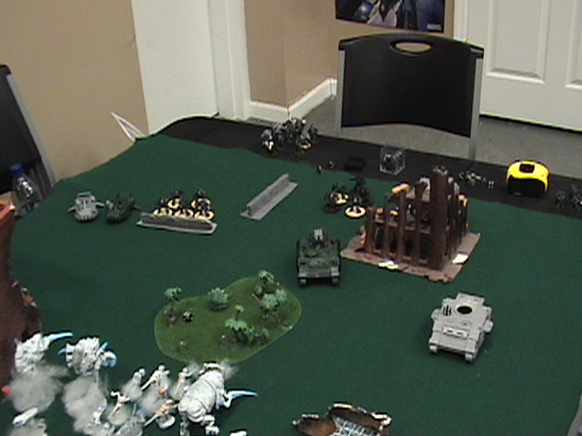 BA the last scout squad take a wound off the trygon with sniper fire, the Doom is melta'd to death by the land speeders, the Trygon is wounded by sniper fire, the WW scatters and only kills 2 gants hiding behind the HiveTyrant, the Razorback killed the last of the 5 gant squad, (damn fast rhinos). death company runs to the Objective they once claimed.