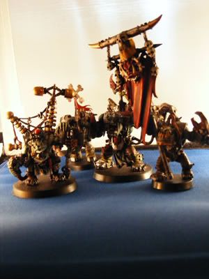 Thx.. the WAAAAGAH!!! banner was painted almost in the same fashion as the nob with the red war face. Except I used Red Foundation (forgot the name) then blood red... I like the way the red pops out on the banner. I didn't want to use the Waaagh banner from the ork metal boxed set (cost 45 bucks), so I purchased the banner from the black orks boxed set from fantasy warhammer. Got the bitz from ebay then shaved off the back of the banner to fit the animal skull on top with an extra set of horns... i liked the way it turned out.