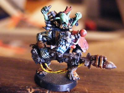 Mek boy with rocket launcher.. I used some extra bits to fit it on him.. and I put a goblin on his back... lol