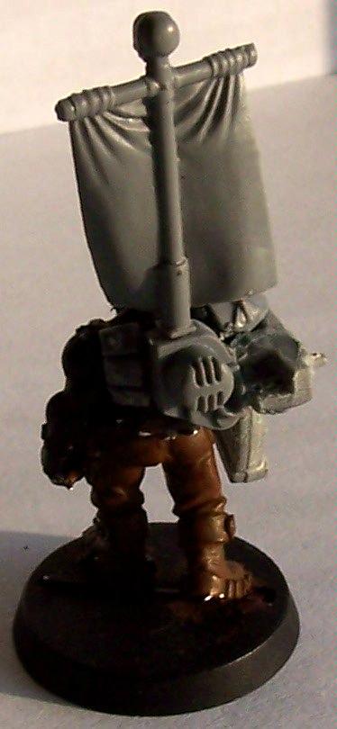 If you want banners for planting, have a look at the Catachan command sprue. There's someone carrying a rolled up banner that looks like it's ready to be planted in a claim spot.
