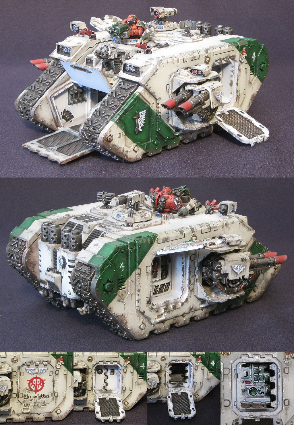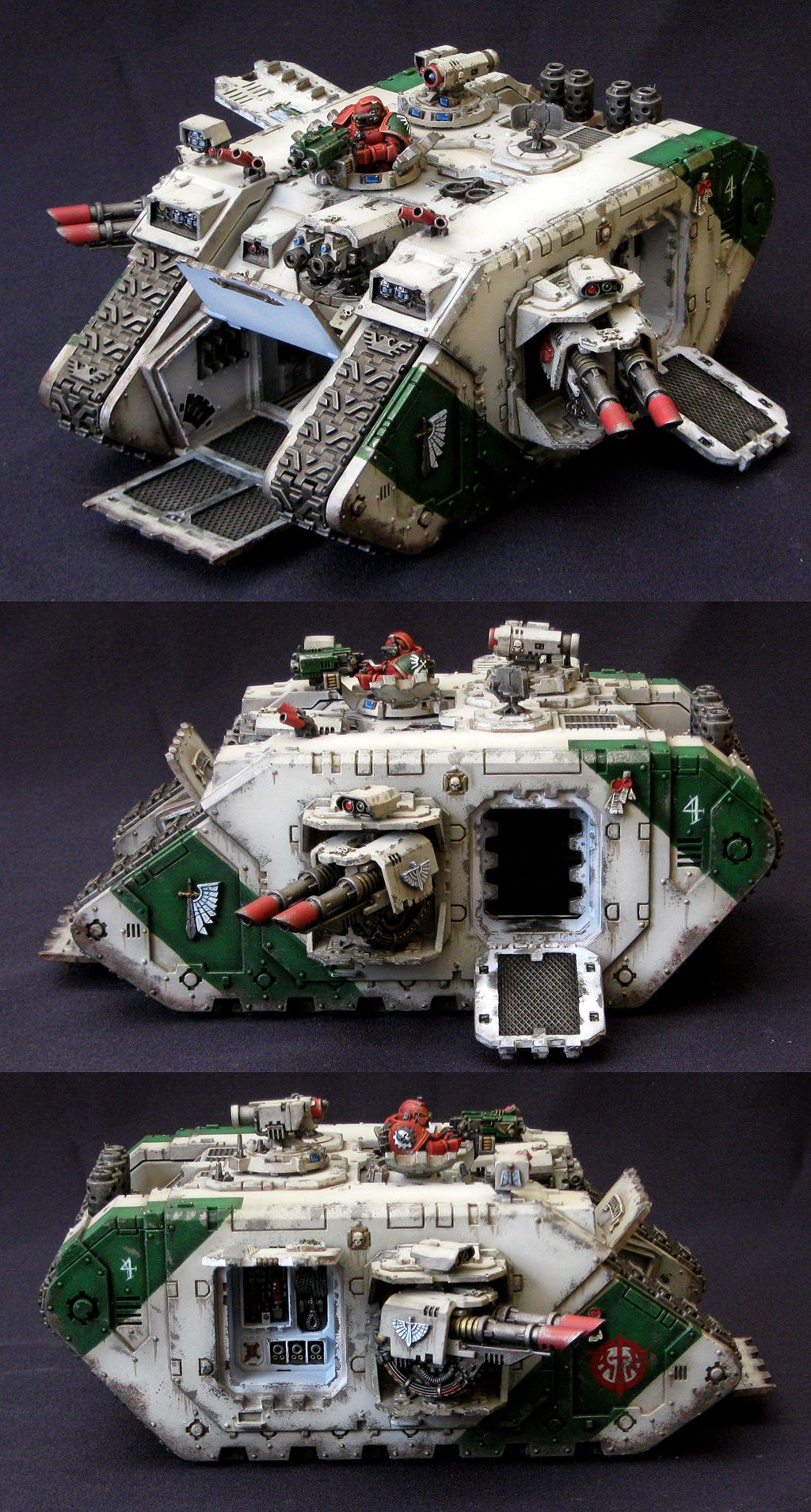 Land Raider. In need of better photos. Interior is fully painted. Doors hinged and magnetised, sponsons magnetised.