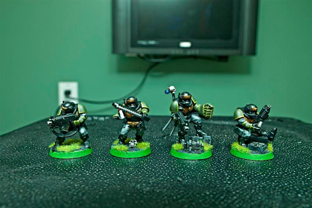 No worries, convert away! The basic scout box is awesome for guard, you get shotguns, bolters, bolt pistols, big ass combat knives and even a heavy bolter. The heavy bolter dude makes a good sgt harker. Automatically Appended Next Post: Vorlon wrote:Very bold color scheme...love it!