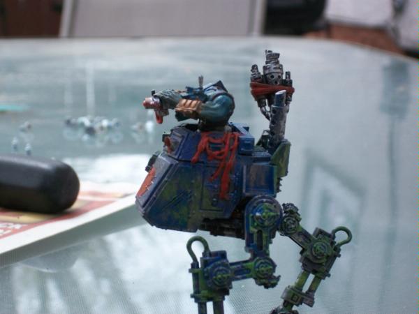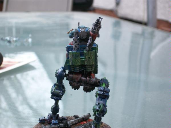 If you have the bits, you might sub out parts of the leg for ork deff dread bits. It'll make it look ungainly but it might also work out to be something cool, too.