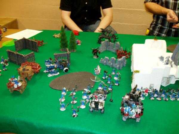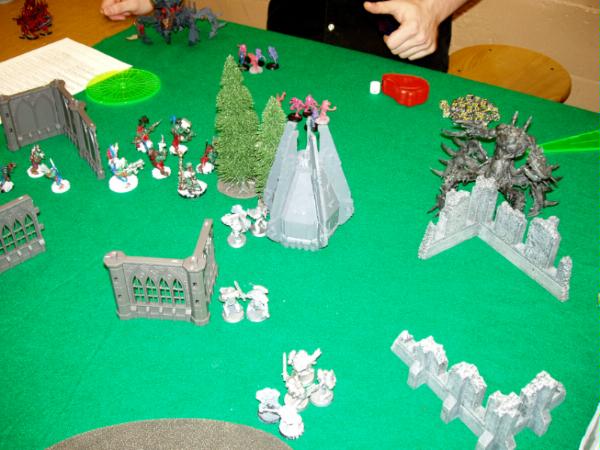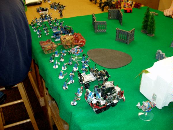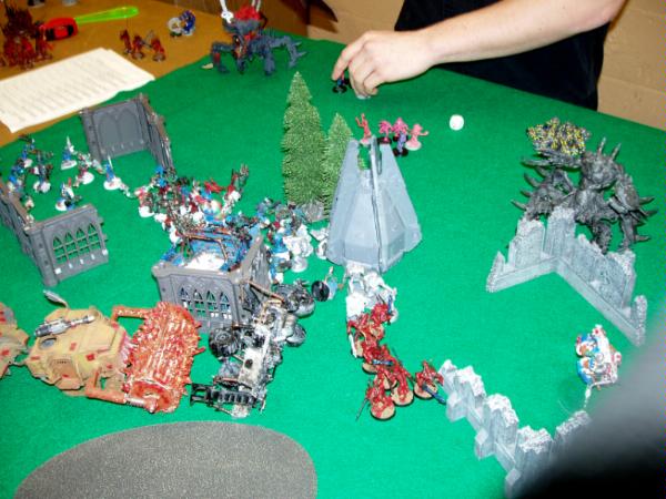 Here’s the pic of the ultimate chaos of the other side of the board. Your guess is as good as mine. My Orks are so much tidier.