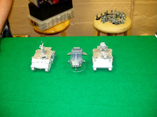 Onto the game. Jake rolls a 6 to go first and chooses to do so. He deploys 2 Rhinos and a Speeder. I like his army style. He has 6 10-man troops that combat squad and each Sergeant has a Power Fist!! I’ve asked Marine players many times why there aren’t more