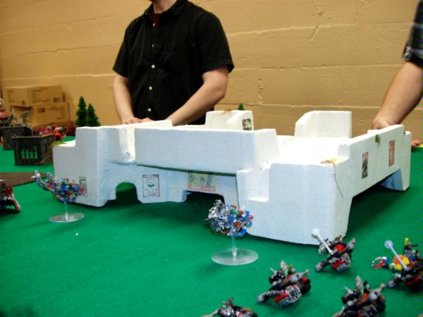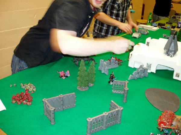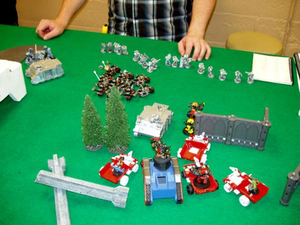 We decided to play 2 vs. 2. Kendal’s Orks and my Kult of Speed against Dan’s Demons and Jakes Marines.