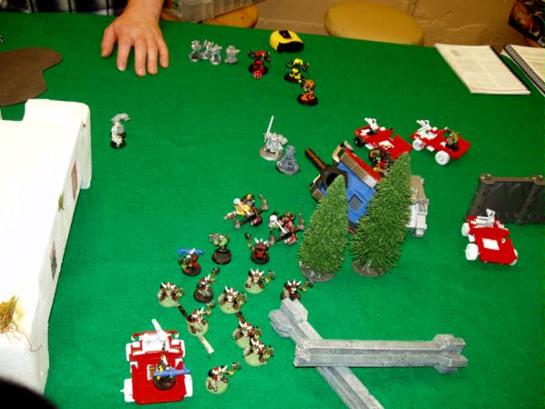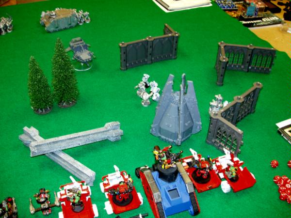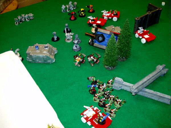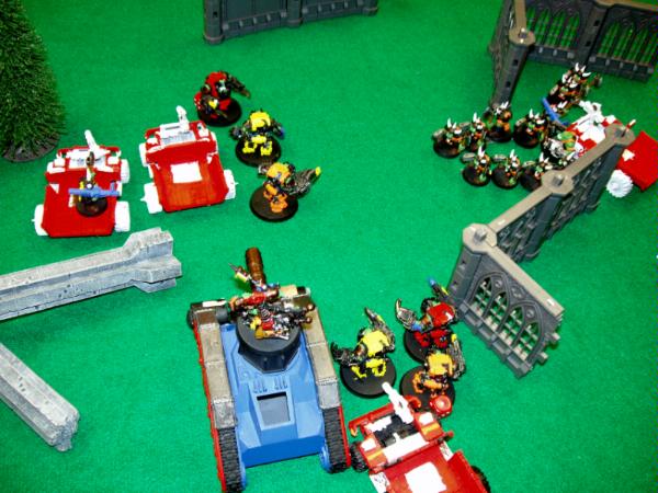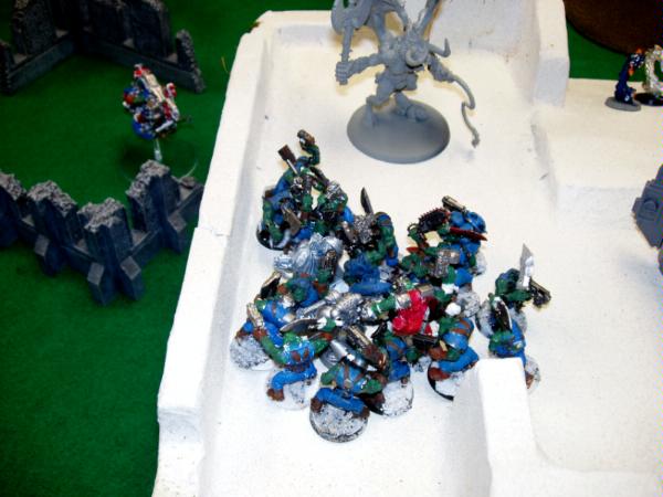 The aftermath of the previous picture with the Mega Nobz failing yet another 2+ save versus 5 marines!!! One more Termie is dead. And I think I forgot to have my Bikes fall back. Not that it mattered at all.