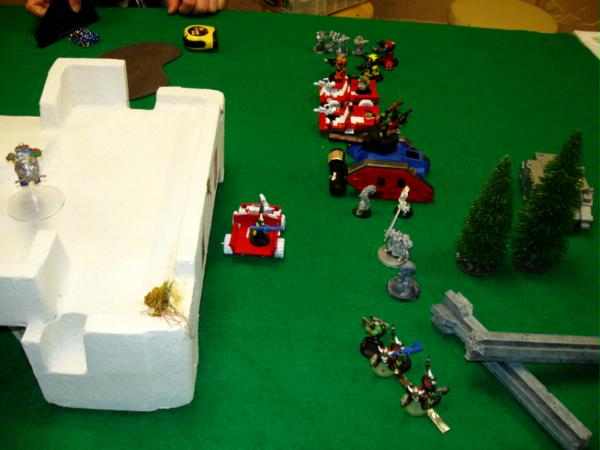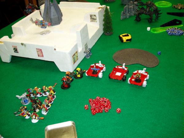 KFF Mek’s range while the Mega Nobz prepare to kill some more Marines. My entire force has now shifted 90 degrees to join up with Kendal’s Orks.