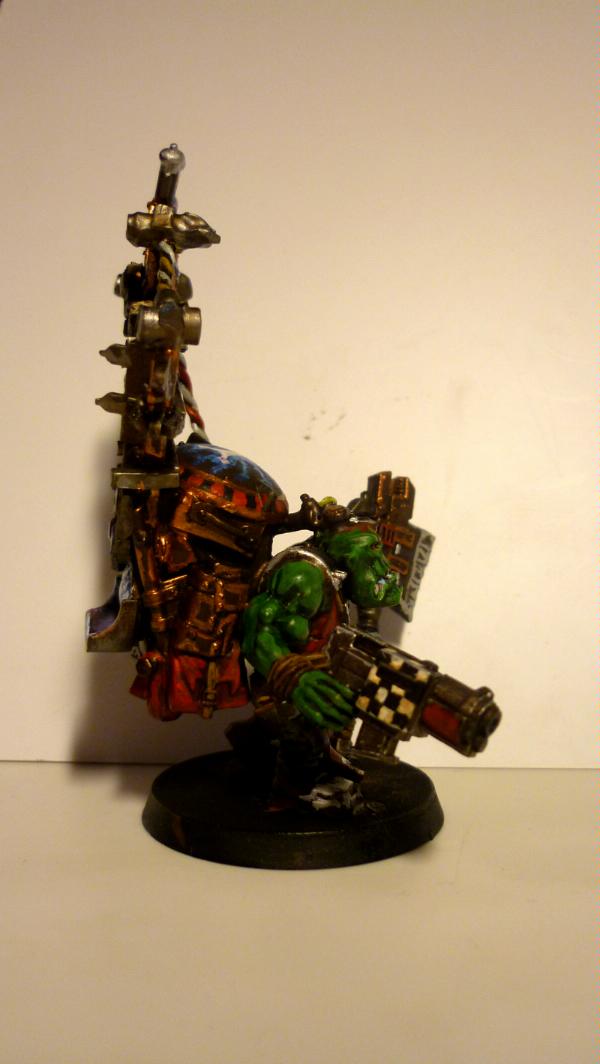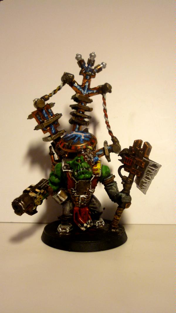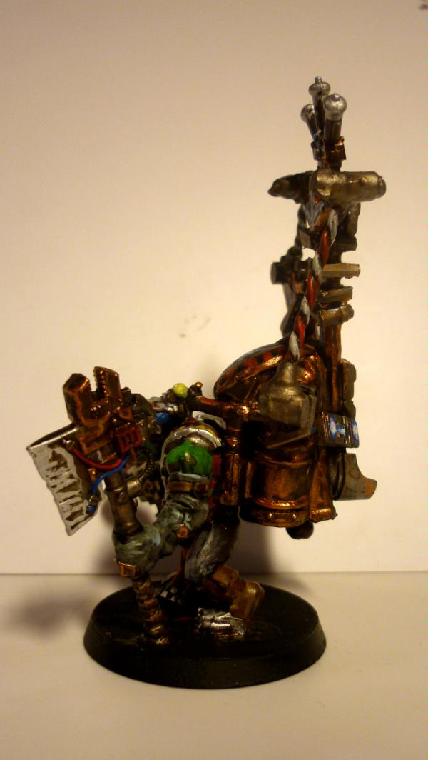 i am playing orks, with my made up Zmiles waaagh, alltho i have not made Zmile yet.. (he's is a warboss in megarmor) Zmile, is crazy. Big smiling helmet presents him well. He fancies gear. therefor loot and rebuild to mock the humeis.
