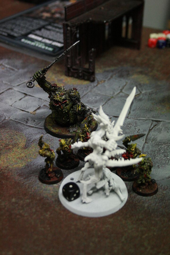 DPS kills the DPN and consolidates into cover with only one fragile wound left. and allas my chosen icon bearer is no match for the T5 plaguechampion and gets squashed by his