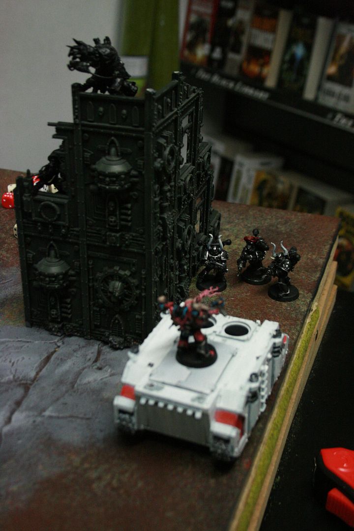 shooting; the oblits fire multi melta's at the rhino but fail to crack it open.