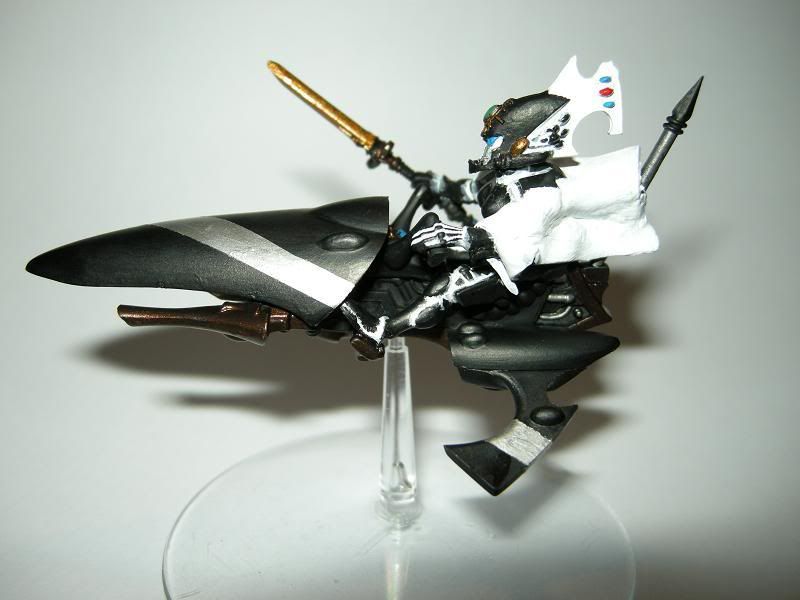 Or petition GW to actually make some legs-in-robes bits instead of that stupid 'conversion kit thing they had which was essentially a saw and some poor instructions. It's surprising, given how many people want to run an all bike council, they could make some sales... but instead people have to end up doing silly things like chopping off a warlock head and just plopping it down on a jetbiker body is the one I've seen. It's the robes that are hard to deal with. Putting him on a Vyper, while aesthetically cool, also gives you a big disadvantage in TLOS since the Vyper has a much bigger base and body than a regular jetbike. It's like you have to take a disadvantage just because the conversion is so nigh impossible for the average modeller to do well.