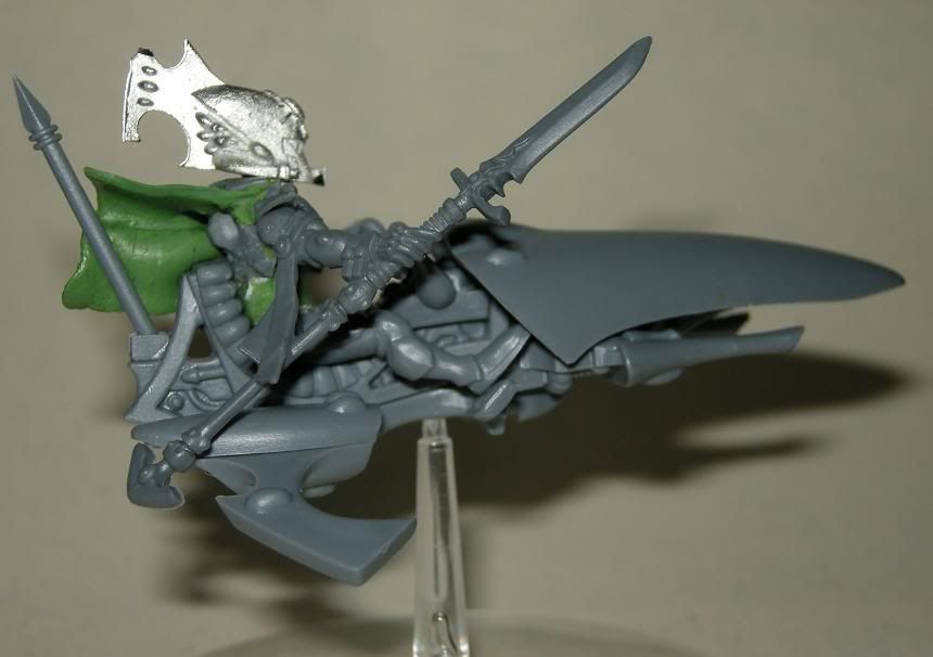 Now, back on topic I really like the one GrooTheWanderer posted. There are lots of ambiguous bits and pieces that can be chop/pasted together, especially the 'bare head' bits left over from Guardian and Dire Avenger boxes, and the extraneous exarch weapons. Stick them on a regular ancient Guardian Jetbike body and give them all cool hair-dye jobs so they stand out as the Warlocks they are, exotic colored outfits, and the spare exarch weapons from the Dire Avengers you can get your witchblades and singy spears. I think it would be a pretty obvious warlock squad, while still being table-top good looking and actually fitting the TLOS signiature of a regular jetbike without having to saw through metal.