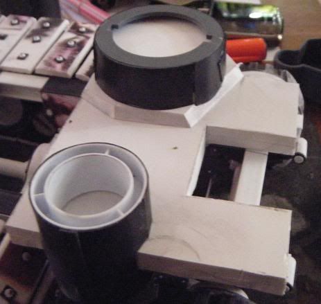 I could have just done the standard Baneblade conversion but it looks too lumbering compared to the old one so plasticard away.........
