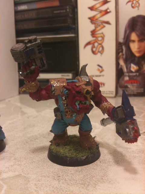 She is painting the Orcs and trying to paint her horde in a glam-rock style. I am going for some kind of offshoot of the "crimson fist's with my Space Marines.