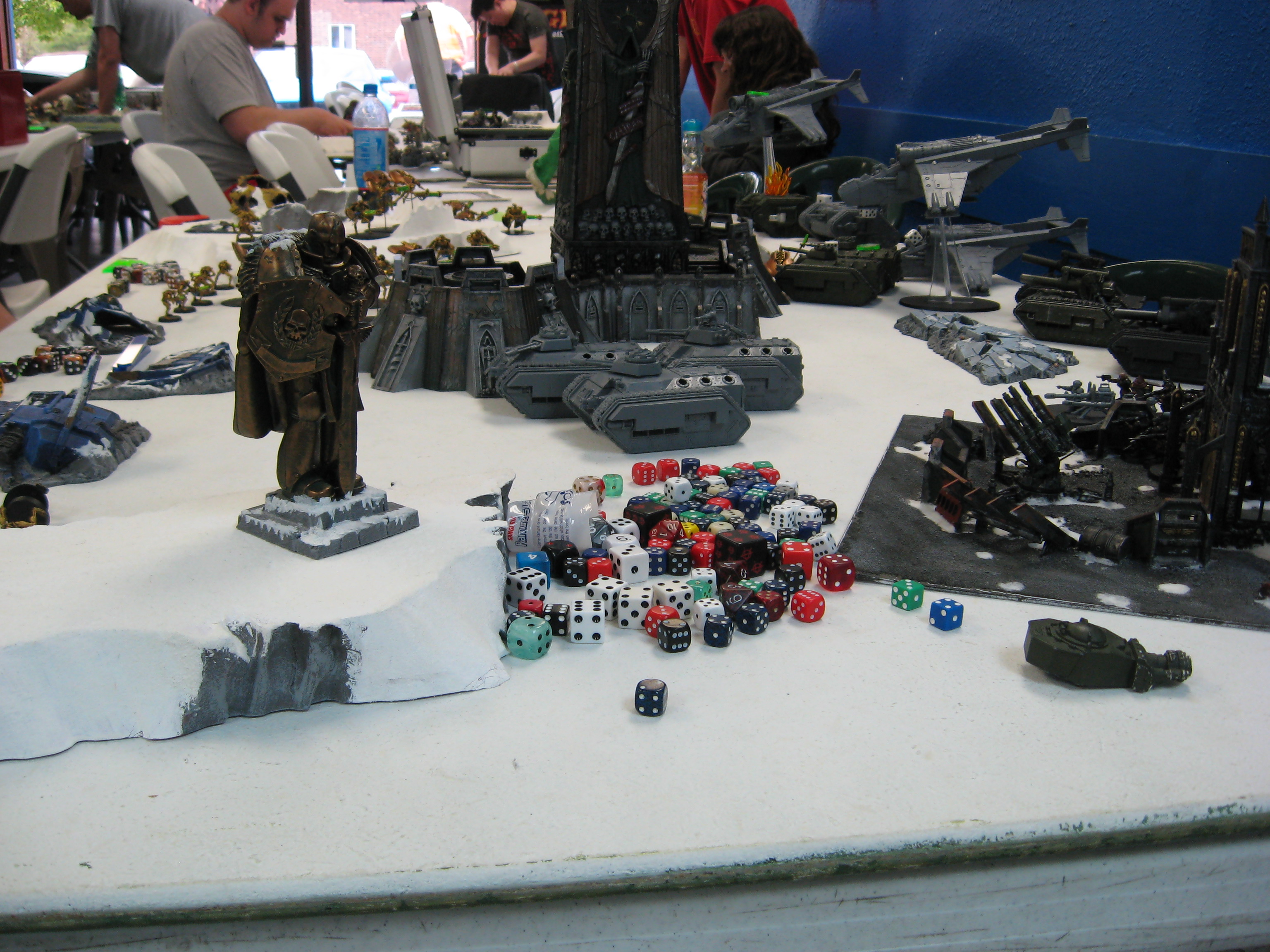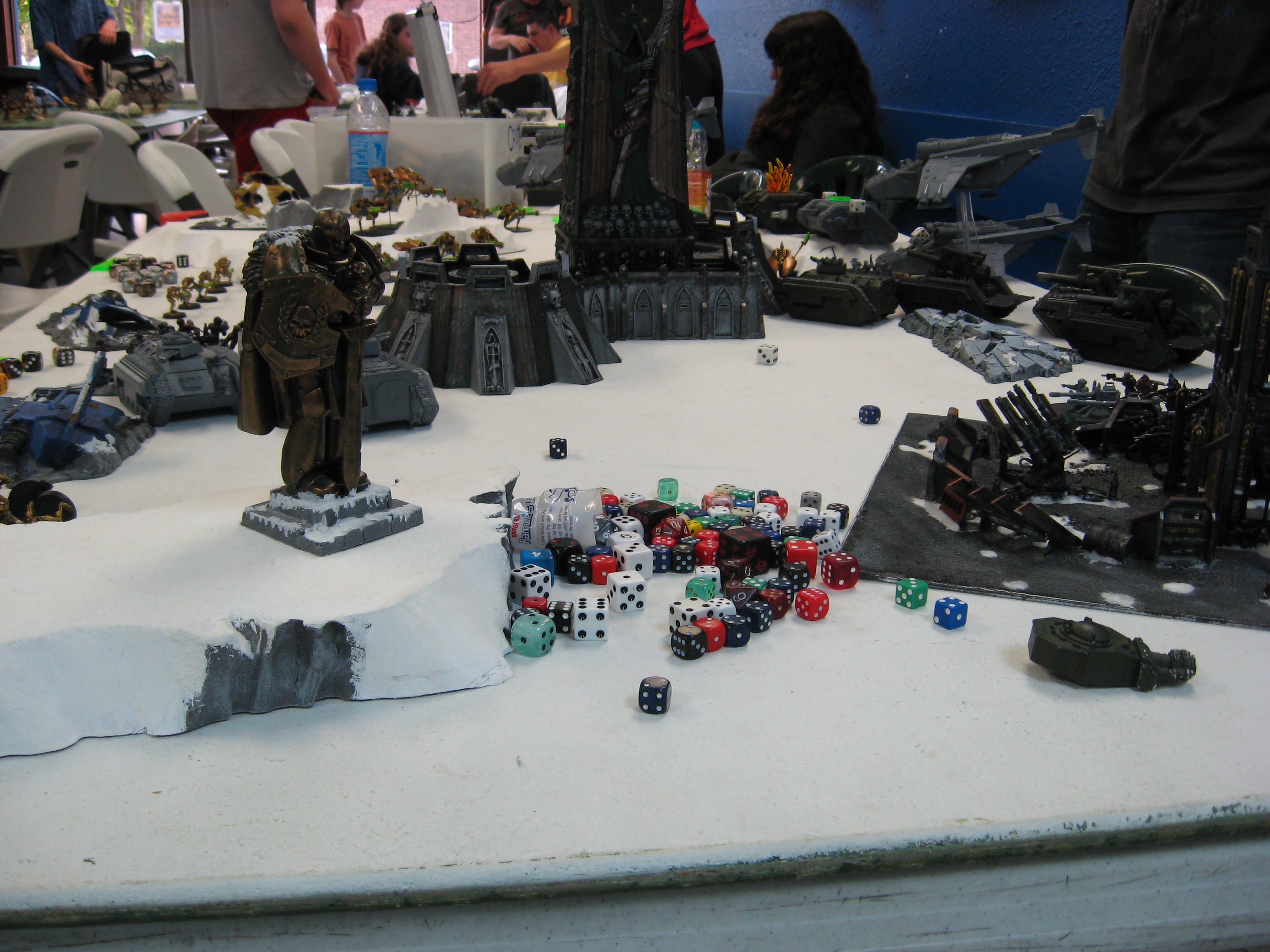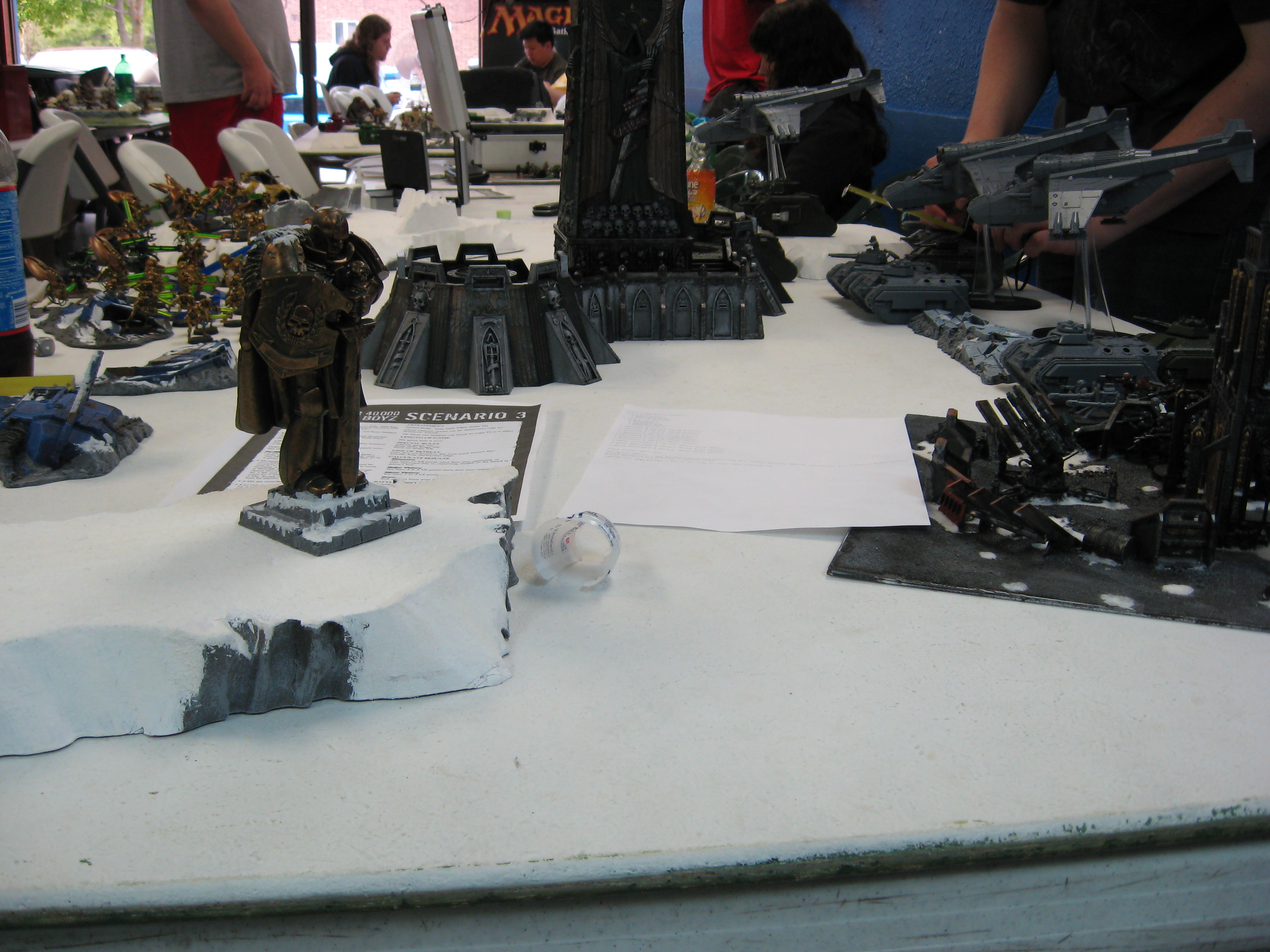 It was contrary to what most people said because the tables still LOOKED cool. Most of them (besides the two snow tables which i, the guard player, was able to play on) had at least 75% of the table covered in terrain. The book recommends that only 25% of the table be terrain. If we hold semi-finals, they have to be a lot more strict about it.