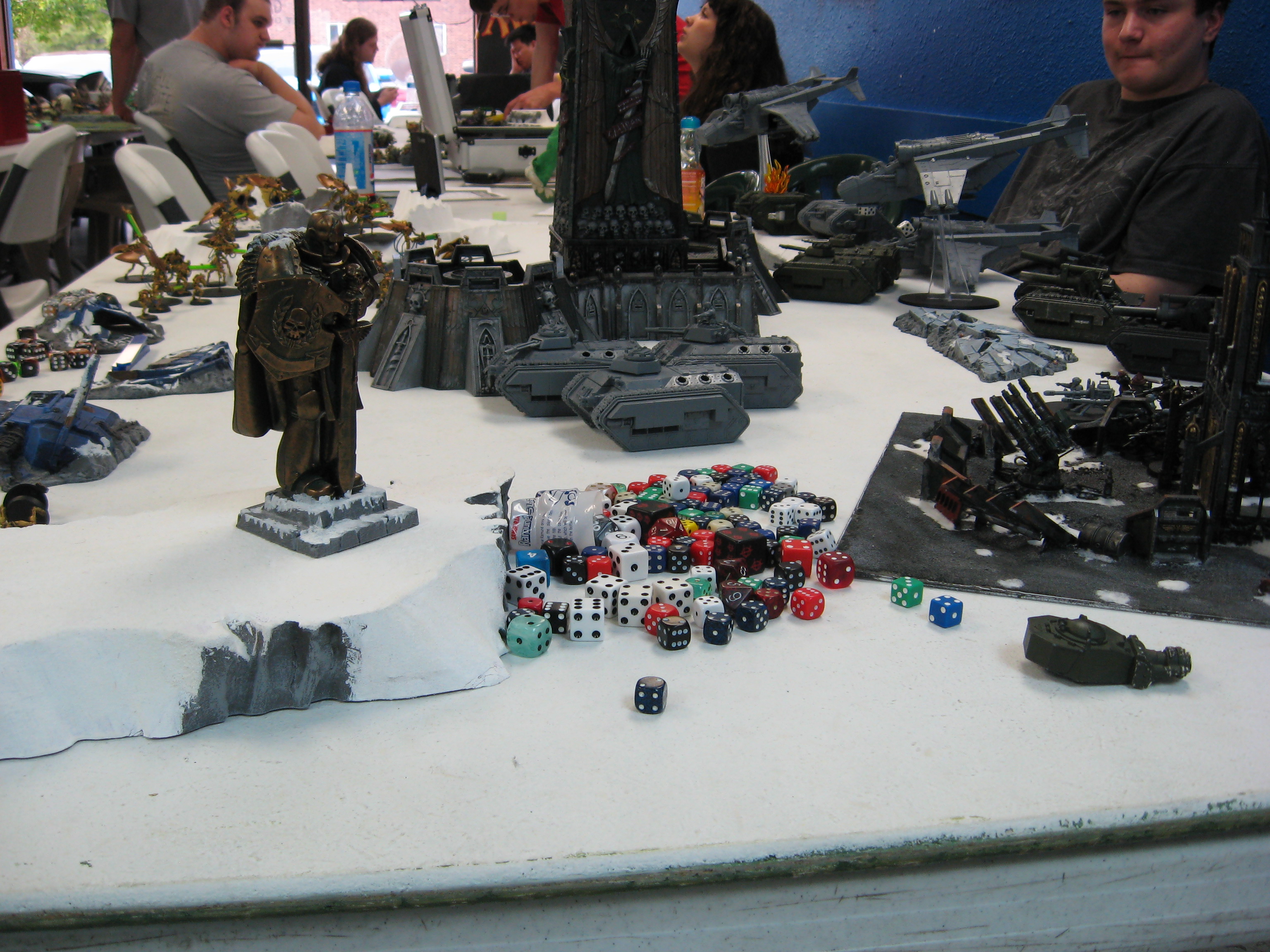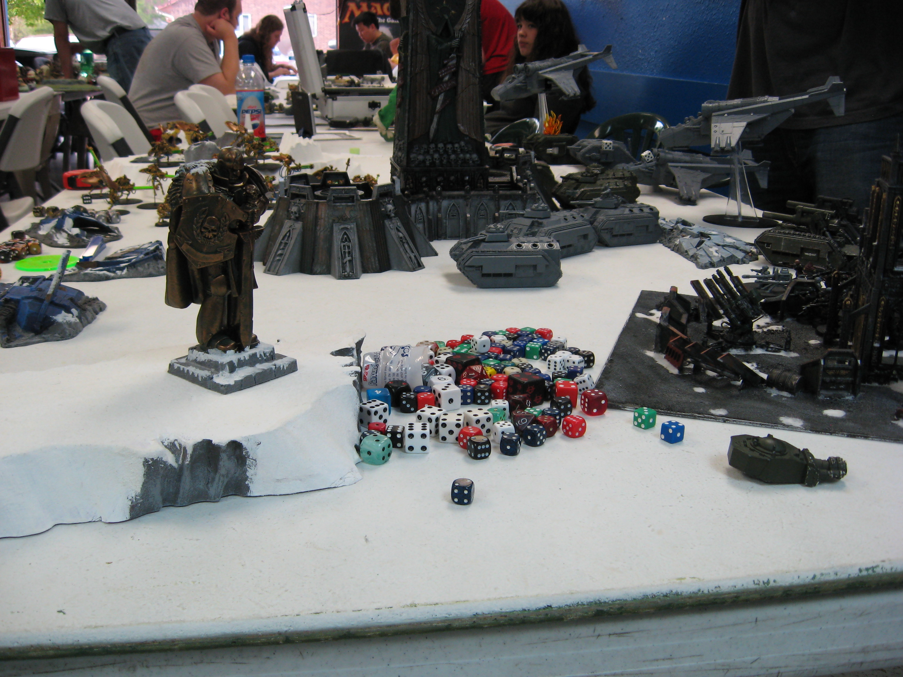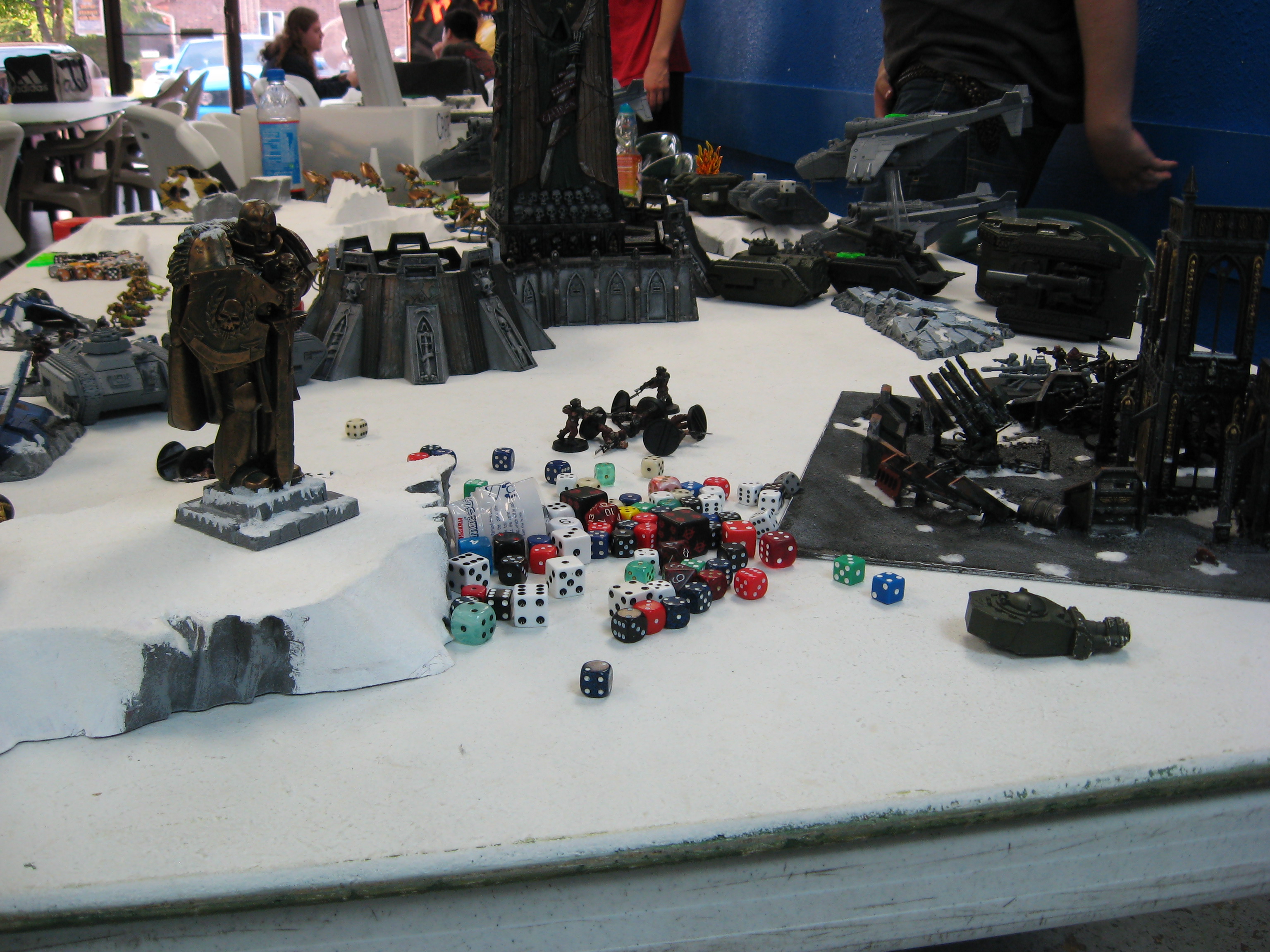 It was contrary to what most people said because the tables still LOOKED cool. Most of them (besides the two snow tables which i, the guard player, was able to play on) had at least 75% of the table covered in terrain. The book recommends that only 25% of the table be terrain. If we hold semi-finals, they have to be a lot more strict about it.