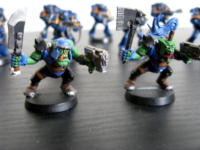 KingCracker wrote:I agree, specially on the Orks. Washes are fantastic little products. I have to say it looks like your off to a pretty good star as far as painting goes. The only thing is the paint looks a little thick here and there, so Id suggest thinning your paints down a bit with some water. Check out the tutorial section to learn the right and wrong ways of doing it