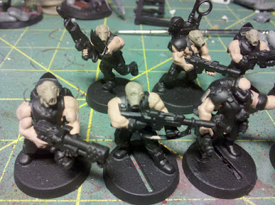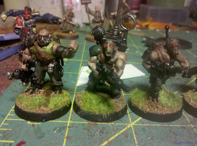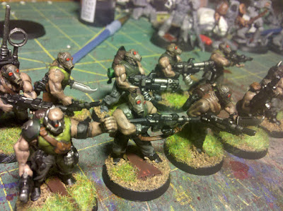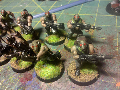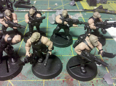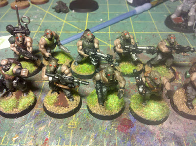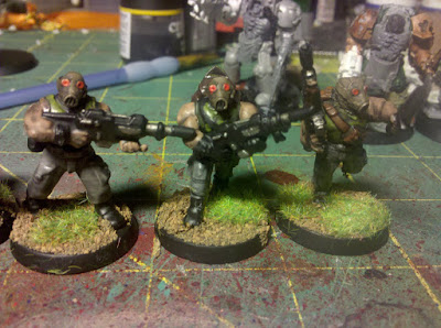 Here are more of the guardsmen i have been converting for a catachanish army with gas masks. These Pig iron heads are just amazing and very useful for creating a unique army.