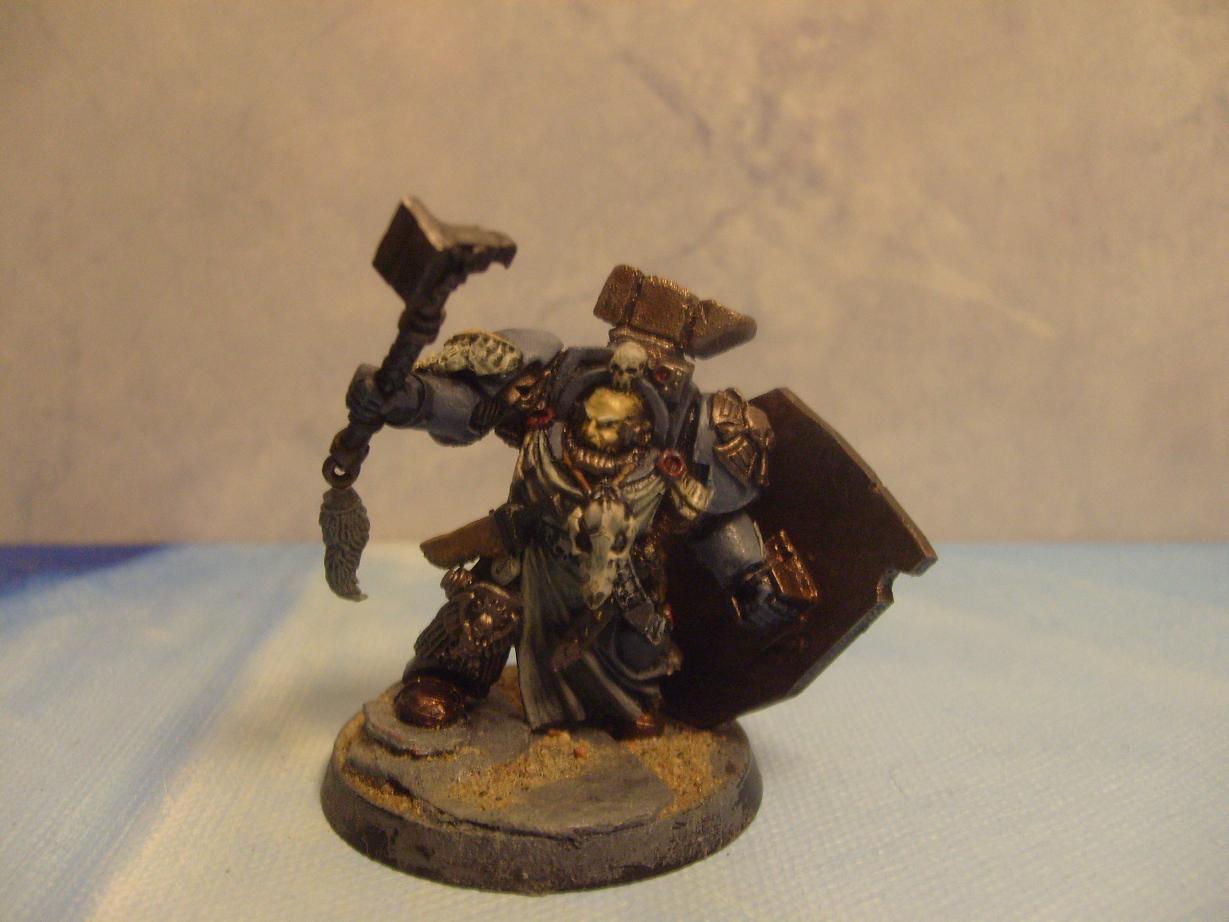 I had a Terminator Captain when I started my Wolfys, so I tried to make him look like a spacewolf as seen below. That was the first attempt, then I added more paint and a homemade cyclone missile launcher. As You can imagine, I did not quite like the model