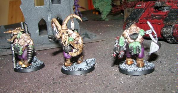 This is my friend's Oblits. They are from Ultraforge minis. They are a bit bigger than normal oblits but do convey a sense of power on the tabletop. He GS the weapon bits on from a normal oblit kit.