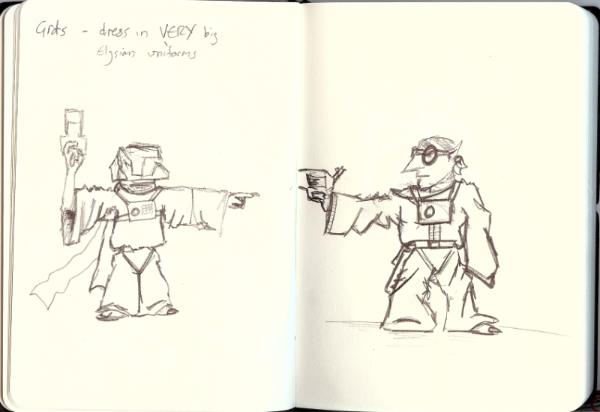 After the long chat the sketchbook came out and the long awaited Drop Grots finally materialised as a sketch: