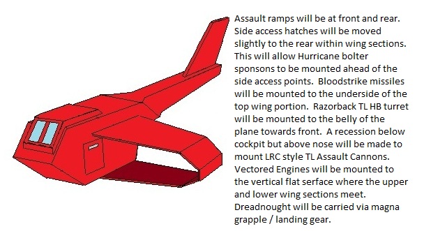 I had thought of the harrier, but the engine setup is far too streamlined. Wouldn't have that Astartes feel. I thought that I could square off the motor portion of the Osprey engines and get a space marine look. I am not sold on the Osprey, but I am trying to come up with a more original idea. But as for the harrier suggestion, that is exactly the sort of input im looking for, something different. Thanks Son of Marneus.