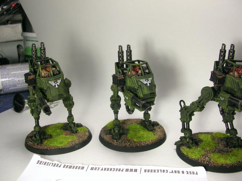 So I decided to add some sentinels to my Guard army. Going with the sort of recon theme, they're scout sentinels. There are 3 in all: