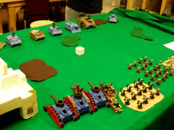 LR. The mobile objective has moved completly away from his Termies towards his deployment zone