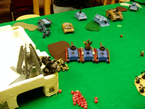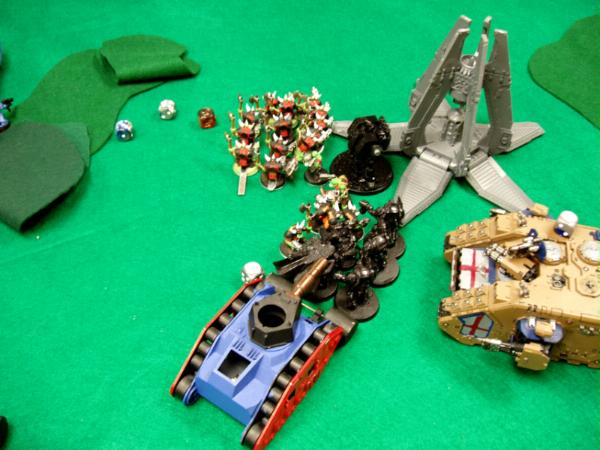and you can see the Hand of Mork lifting the Rhino to heaven. Also the imobilized Vindicator is auto-hit 12 times and goes bye-bye.
