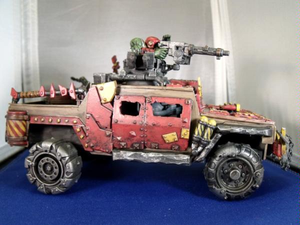 KFF screening them, rolling around the battlefield pouring firepower into enemy units. Alternatively, (and one of my favorite setups) this is 3 Loota squads inside battlewagons sitting on the back table edge, Big mek with