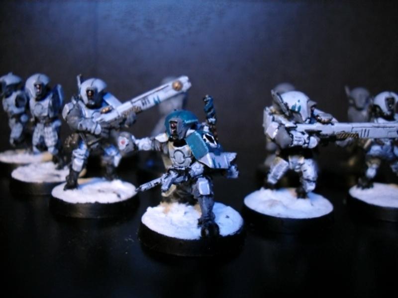 as many tau players who have read the codex as obsessively as i have know. the bork'an sept is home to many earth caste scientists and general know it alls. and as a result i have devised an army with all kinds of technological goodies. such as special issue gear that will be handed out to the various team leaders as i find one who won't have his back split in two by it. other than that i'll be coming up with some alternative suit designs, gear, gue'vessa (because the aun said i need to be an equal opportunity employer.) as well as what ever else jumps into my head at the time.