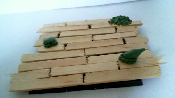 The bases be stuck together in 1x3 rows at present, once the PVA be dry they will be separated and the planks cut flush. Now when the crew assembles the planks will line up again to make deck whole again!.