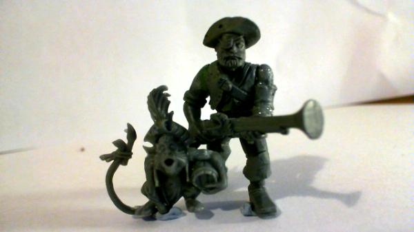 Here be master gunner toombes, and his faithful powder monkey Doubloon. In game terms he be representing a skeleton mate with blunderbuss.