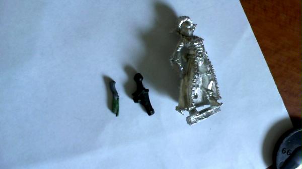So I be having a go at scuplting me own firearms today. For a base I found the hand crossbow from ye olde mordheim acessory sprue to be of the right size, greenstuffed a barrel on there and tidied up some cuts I made trimming it into shape and I feel that I have a suitable pistol for the lovely lady!