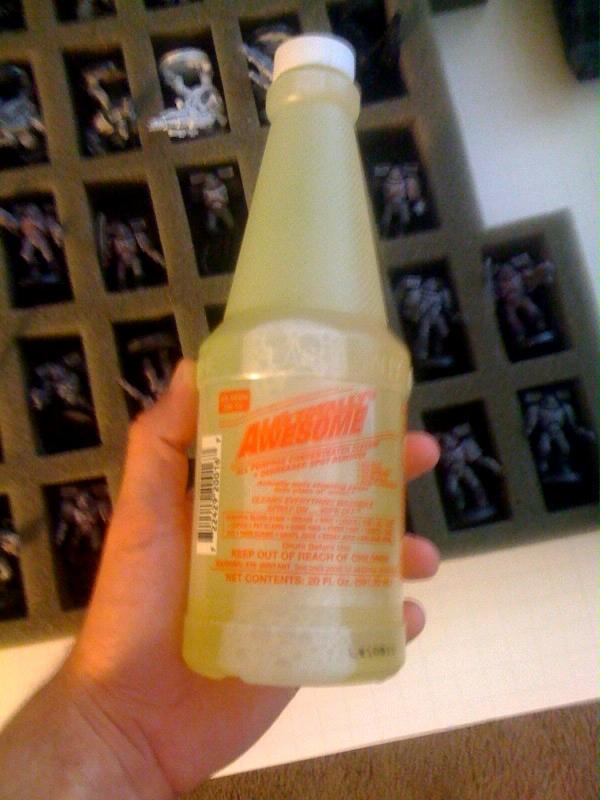 I'll fill a small jar with models and then pour this stuff in on top of them. Then I usually wait a day or so, although you can probably just wait like an hour, and pull them out one at a time and run a toothbrush over them. It takes off most of the paint the first time although about 10% of the models I put through that treatment again. The best part about it is LA Awesome is usable for about 3-4 attempts at stripping. As a forewarning though I do recommend wearing gloves while working with it as it can be absolute murder on your hands.