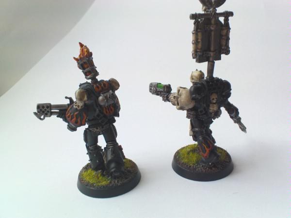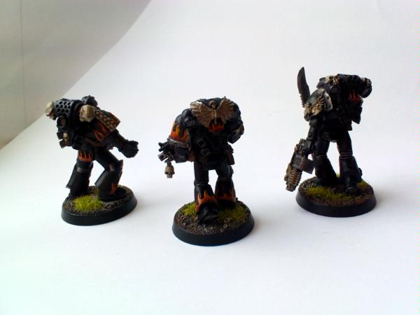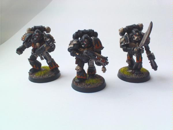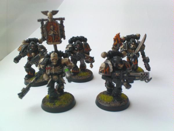 I got side tracked with painting some reinforcements for my Ultramarines, and have a Vindicator (finished except for some squadron markings) and a squad of 5 Legion of the Damned models, which are almost finshed - I haven't decided what method to use to highlight the black armour yet, I may try something new. The pictures of the LOTD models aren't all that good, I think I need to make a light box!