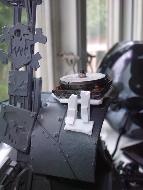 I wanted to make the hatch bigger, and as the chimneys are on the guntower, a couple of rhino top doors could made a nice hatch, fit for 20 orks