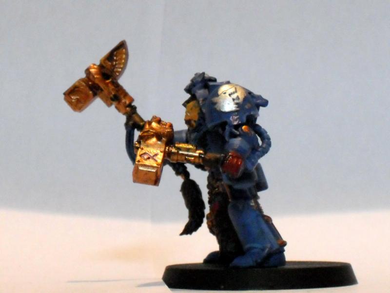 I decided it's high time I started a blog of all my various bits and bobs. Sorry in advance for blurry pictures. Today I wanted to show everyone the start I've made on the first company of the fists of angels. Here is my company captain with dual thunder hammers: