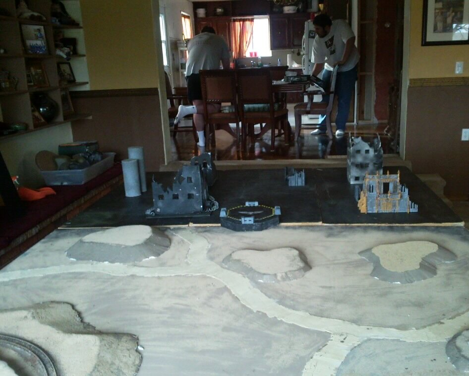 We are about to begin a modified 40k battle. Modified only in the fact that we have 4 armies in battle. Each army will begin 18" from one of the 4 corners on a 6x8 foot board. The objective is to get to the landing pad so you can travel to the space hulk in orbit. Once upon the space hulk the unit aboard will seek out an ancient relic of great power. They must fight through a brood of genestealers or atleast 12 blip counters. Once upon the hulk each model becomes an individual and fights alone. Once any model has made it into contact with the relic they must make it back to the planet surface to win.