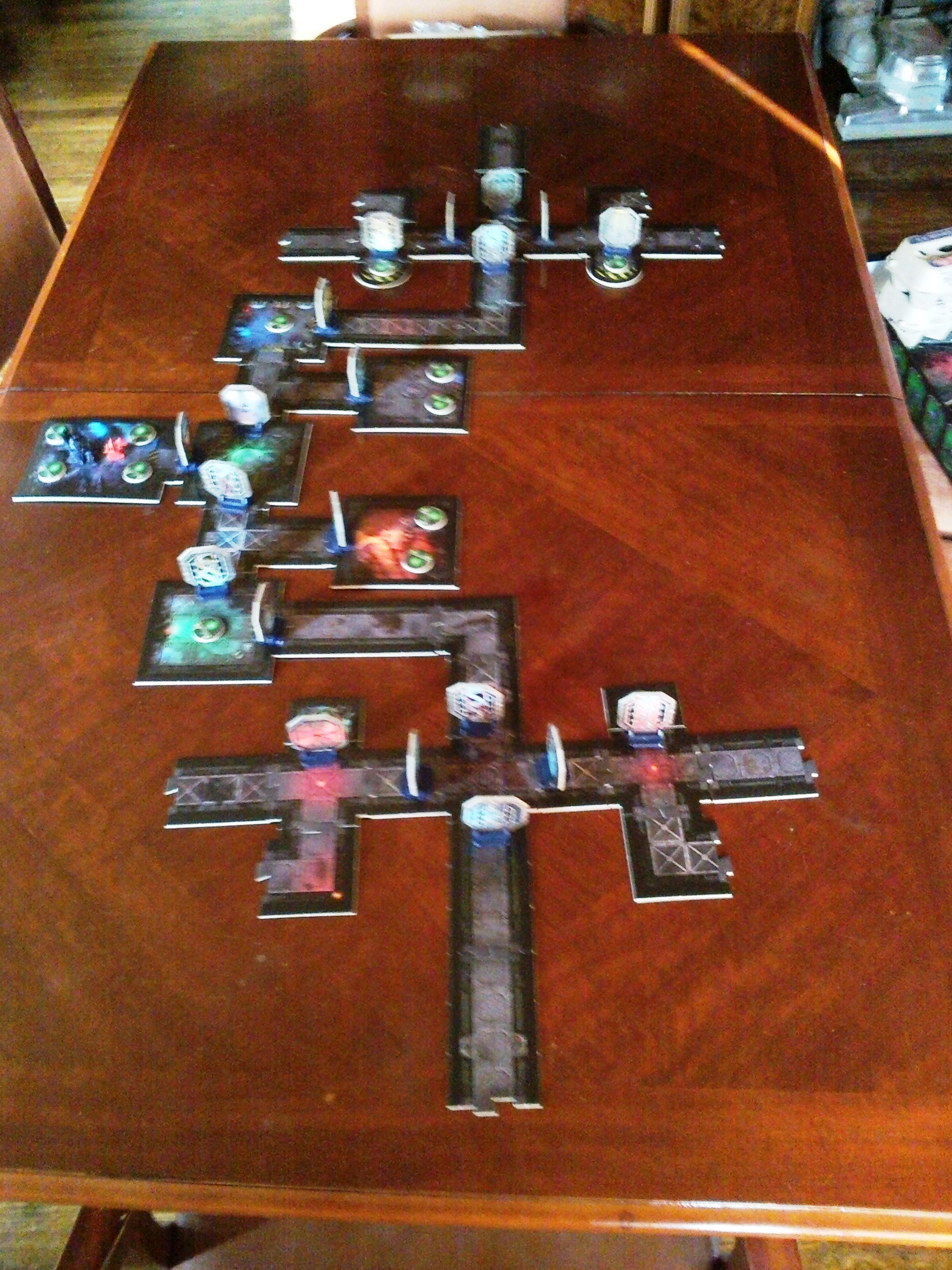 To answer your question Captain Antonius we used the 40k rules in the space hulk...which we all regreted during and after the game....but we also used some of the space hulk rules as well. One area which we should have thought about first was we couldn't shoot past our own models. So it was always an entire unit stuck behind one of their own guys. The orks brought an nearly 40 gretchin on the space hulk.....his strategy to bog everyone down really worked. Most everyone had flamers so we were toasting everyone except the crazy stealthsuit that kept surviving everything.