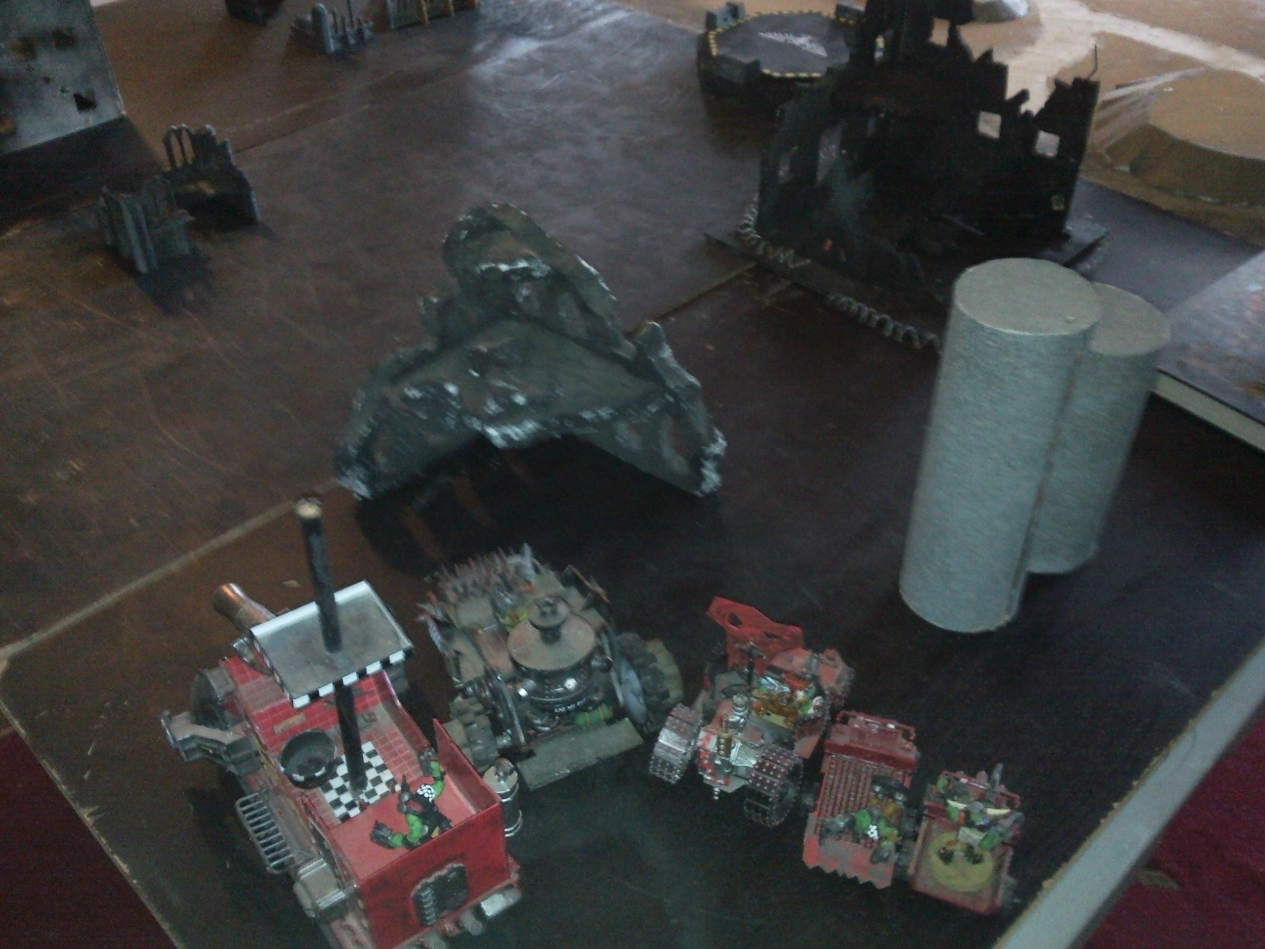 Orks: The Orks moved their vehicles forward again, but is moving slower due to the number of ruined buildings in the way. They are anxious for some combat.