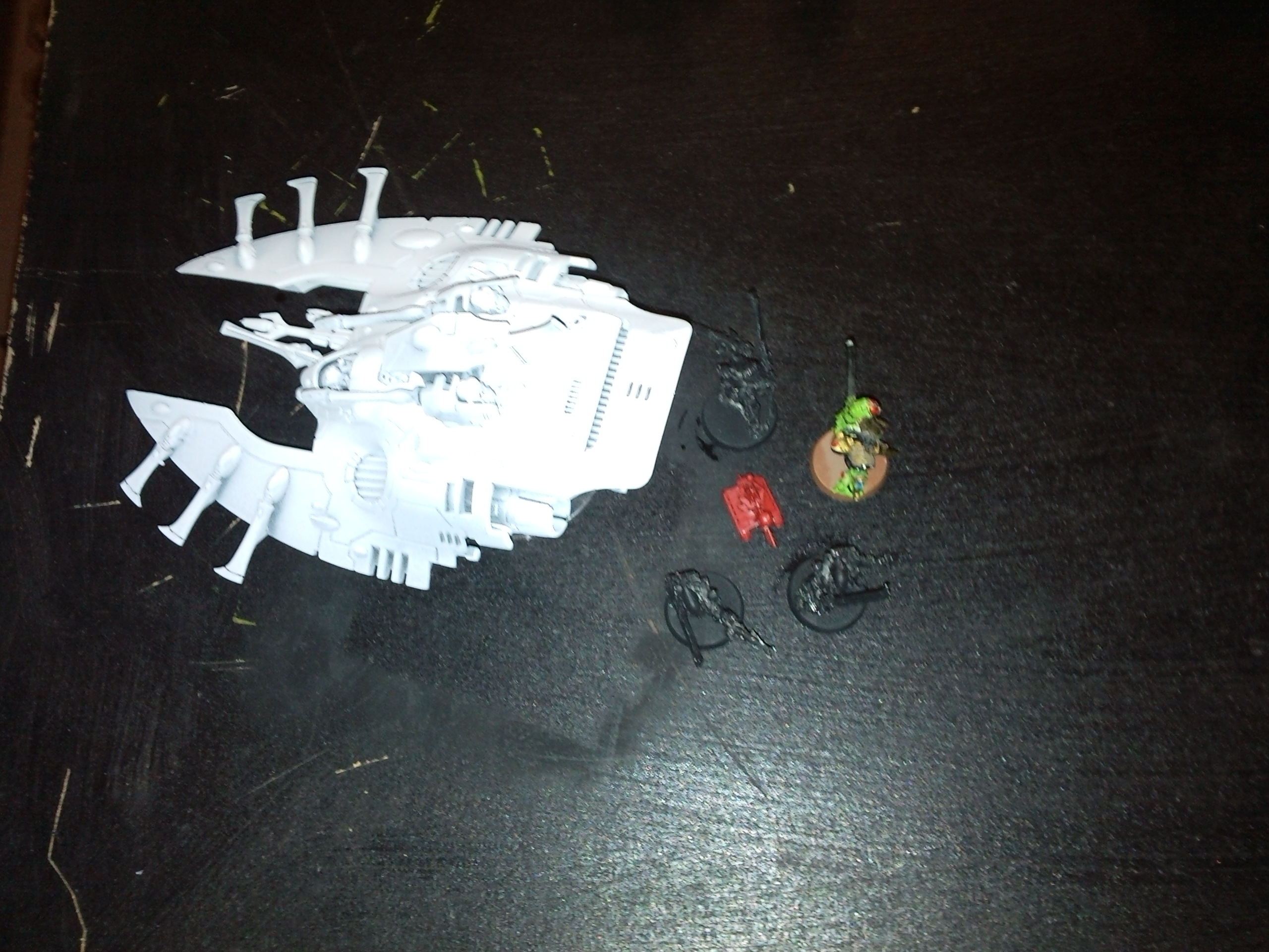 Eldar: The Eldar shot at the Tau and caused a crew stunned on the Hammerhead. He also fired a Fire Prism at the assault marines killing two. His units in the hulk faced a single genestealer and killed him with shooting...but in turn 2 the Exarch was killed by the same genestealer.