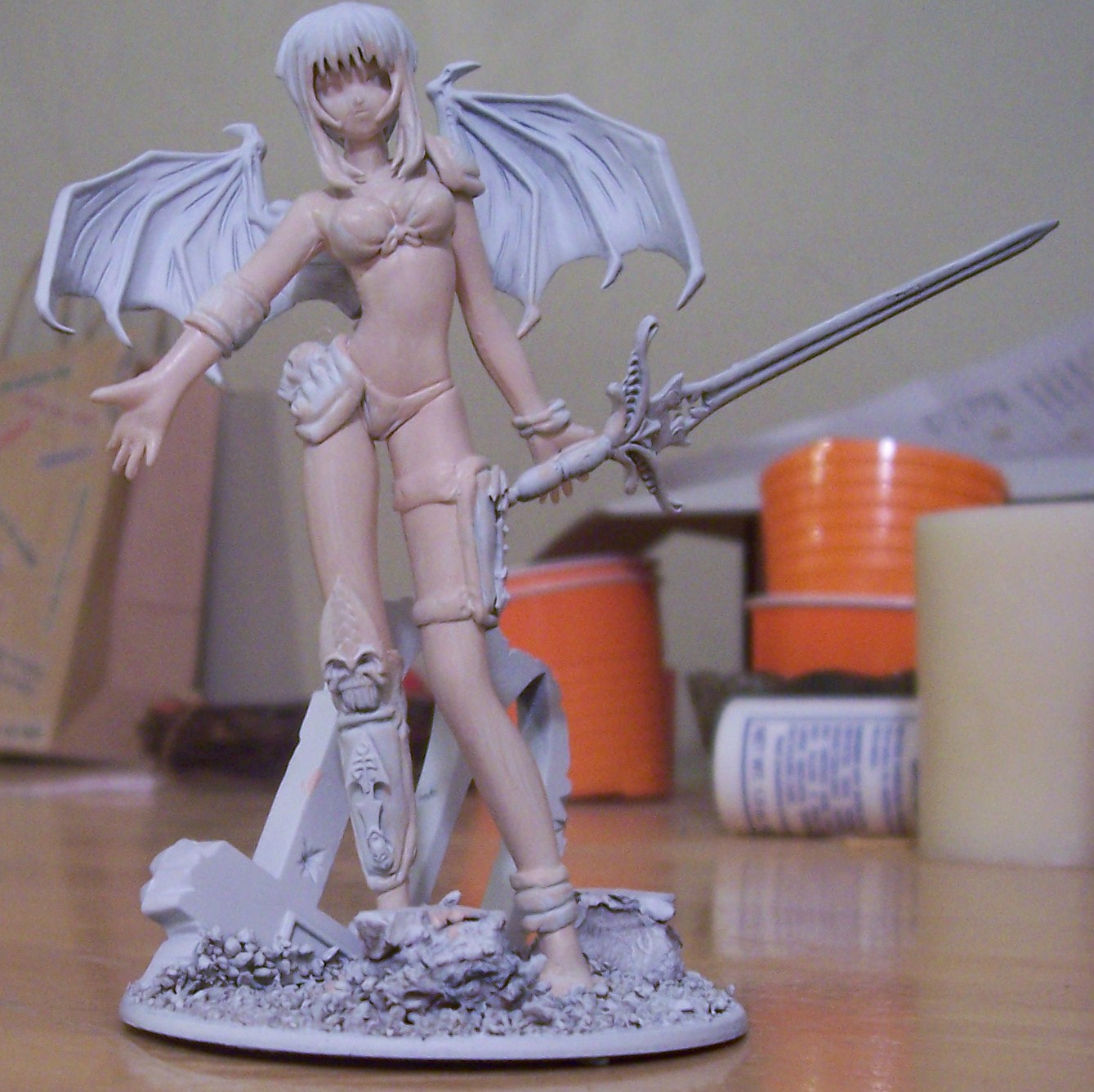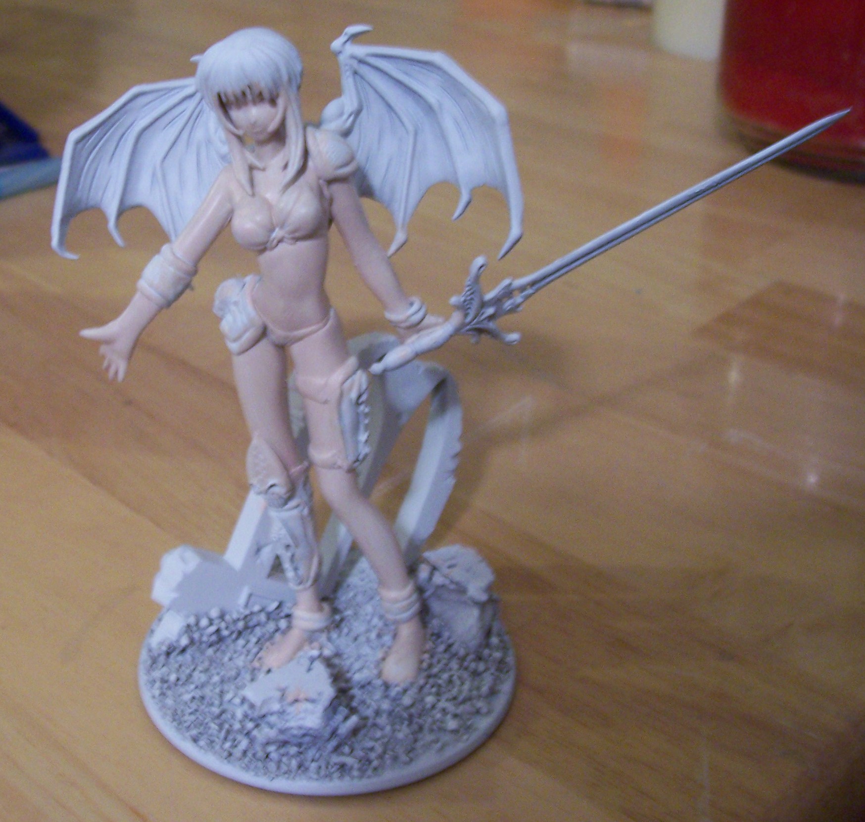 Here are the in progress shots of what I have done so far. I took a swimsuit figure the wifey got me a few years ago and spruced her up with some greenstuff and a few bits from the bits box. She of course will be a slaaneshi demon princess. I know the sword hand is a bit off, but I didn't feel like taking the time to sculpt a new hand.