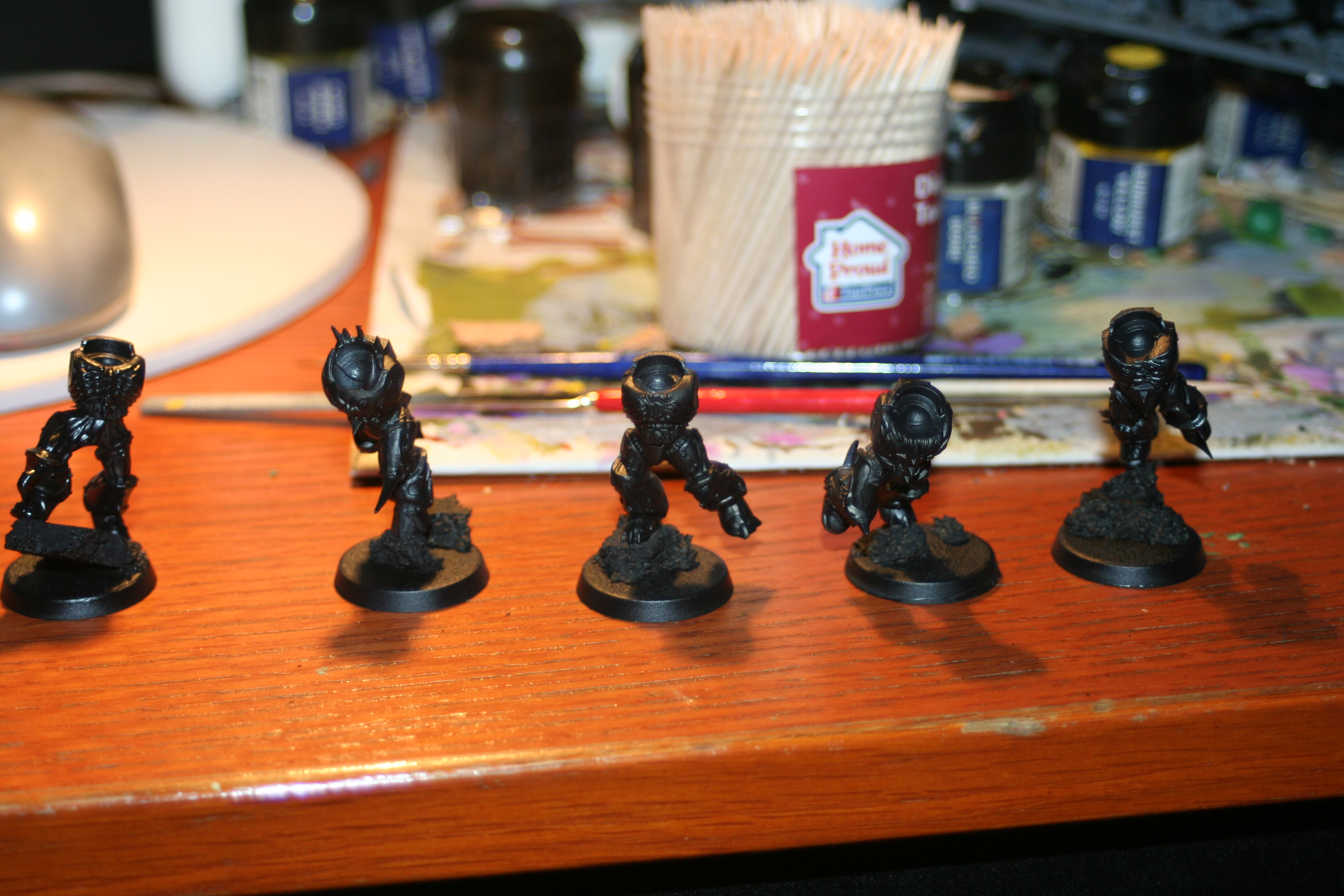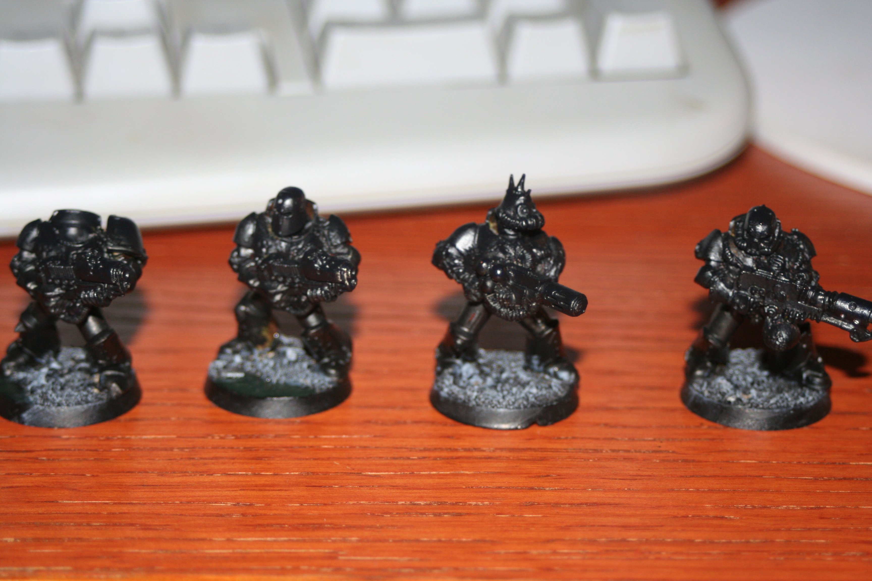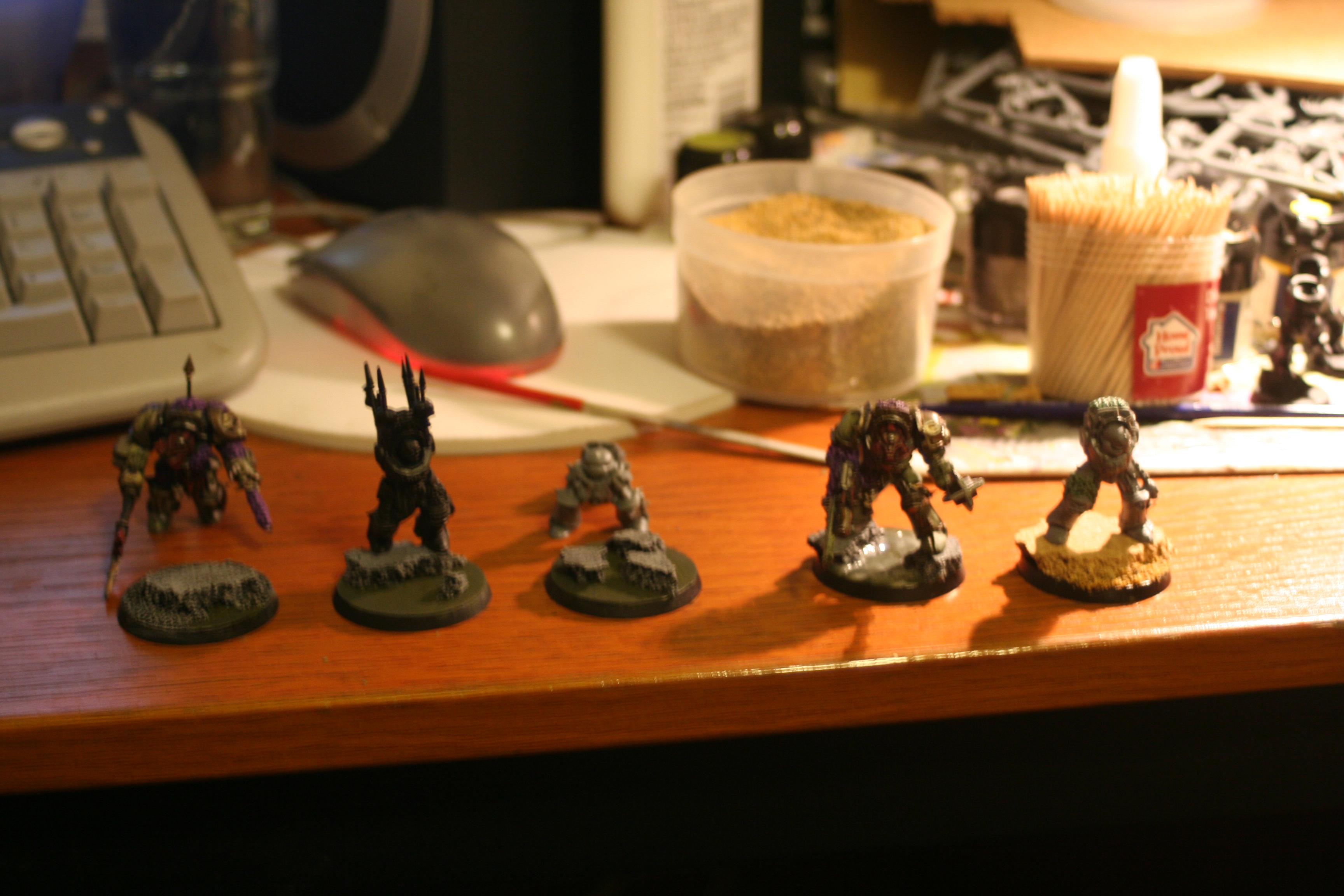 Havnt posted anything for like the psat two days  been kinda busy, well either way, ive been of to the store too buy som cork sheet and some water effects liquid thingymajigg stuff to be able to model the bases, so far ive modelled the terminators and right now im lettign the water effects dry and then also i have based the possesed, i really like how the possessed look, different from what i expected, but i like it  Wanted them to look really wild so most of the models arnt standing on both feet. wanted the effect of them jumping from rock to rock in a hurry to get close and kill.