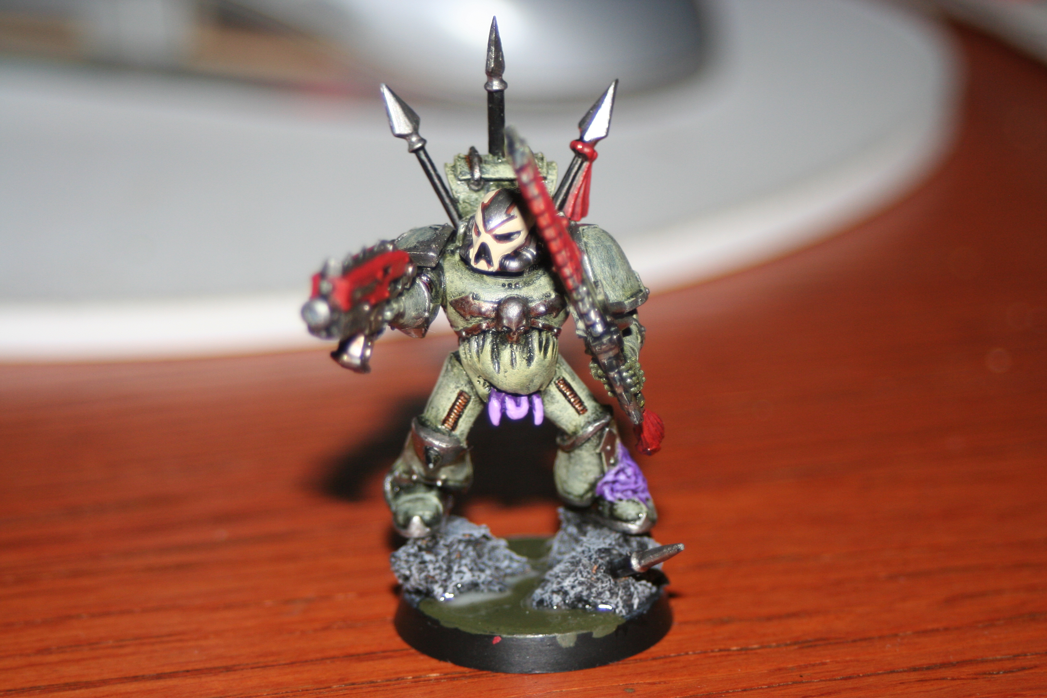 Cheese Elemental wrote:Why can't you use the Typhus model? If you don't want him as Typhus you can greenstuff him as required to create a Lord perhaps. I really like the armour colours and the bronze trim, but rather than "Harbingers of death and decay" that purple growth makes me think of your army as the poof patrol. Make it green or brown I reckon.
